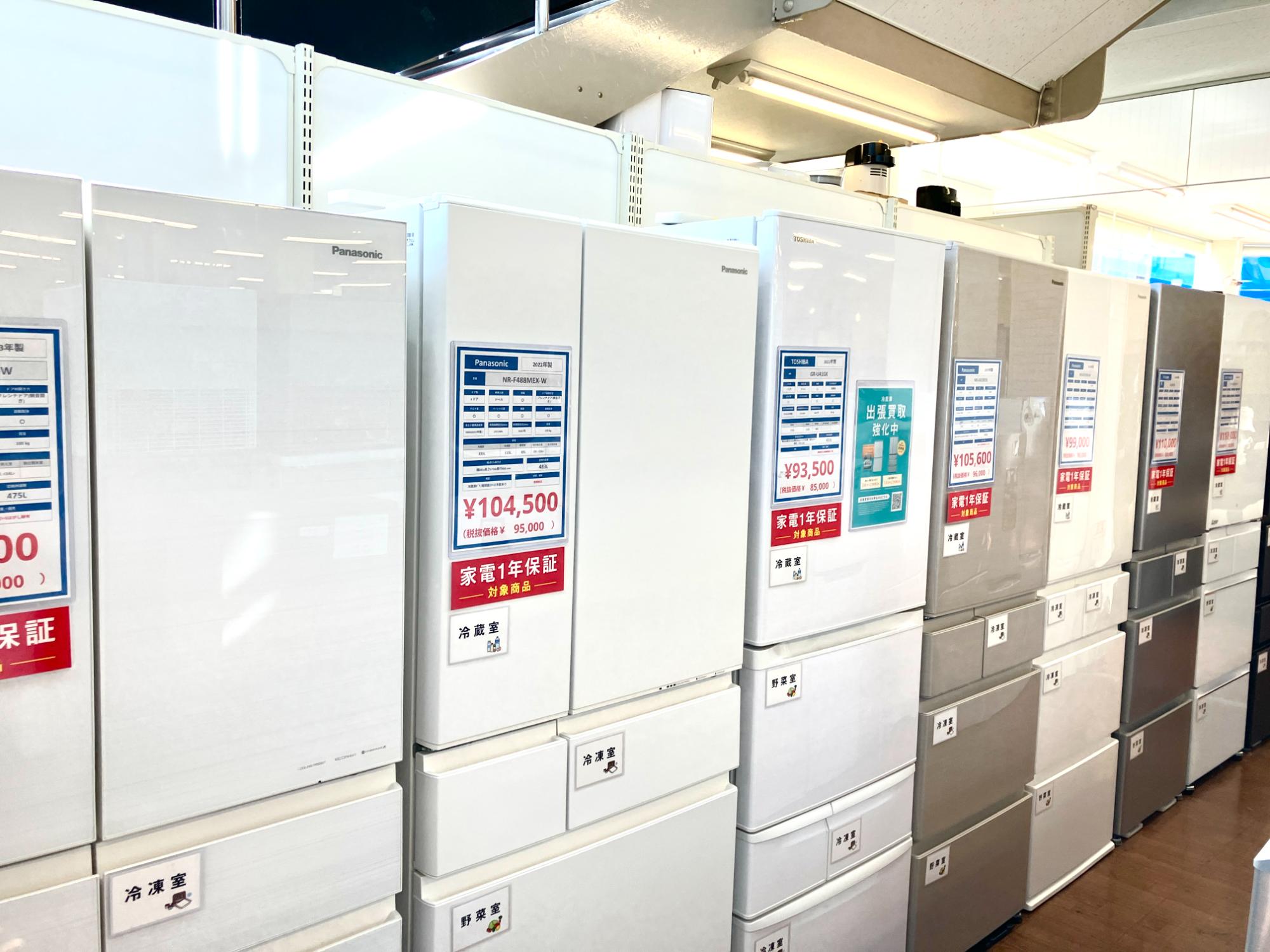 当店では、ファミリー用の大型冷蔵庫から単身用の小型の冷蔵庫