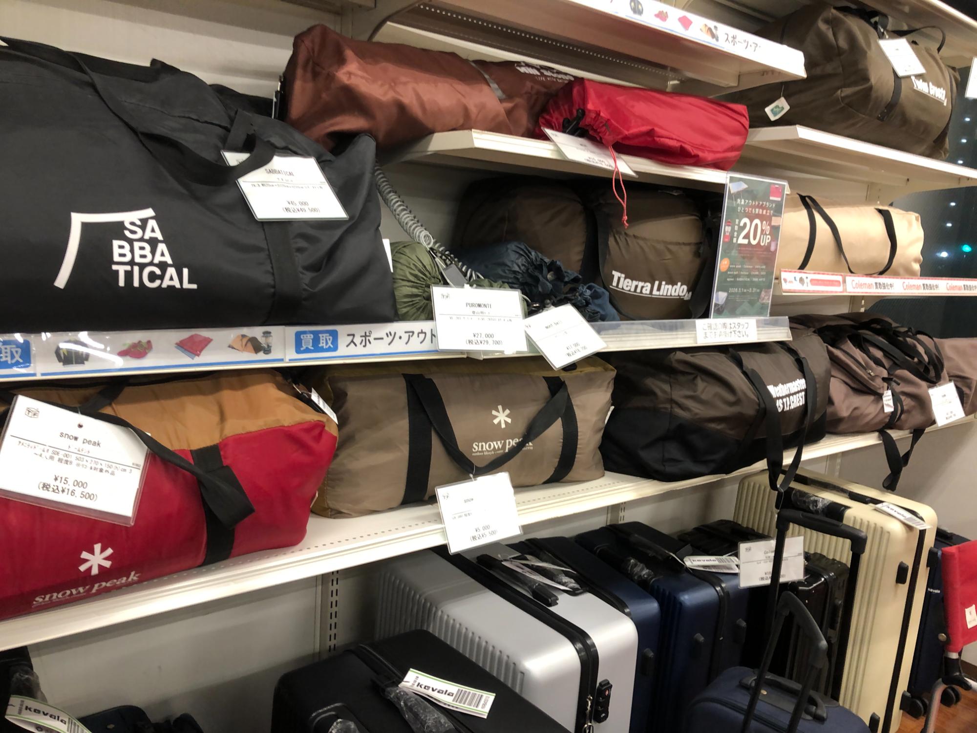 3月はアウトドアブランド買取20%UPキャンペーン!スノーピーク、コールマン、ユニフレームなどのアウトドアブランドはぜひお持ち込みください!
