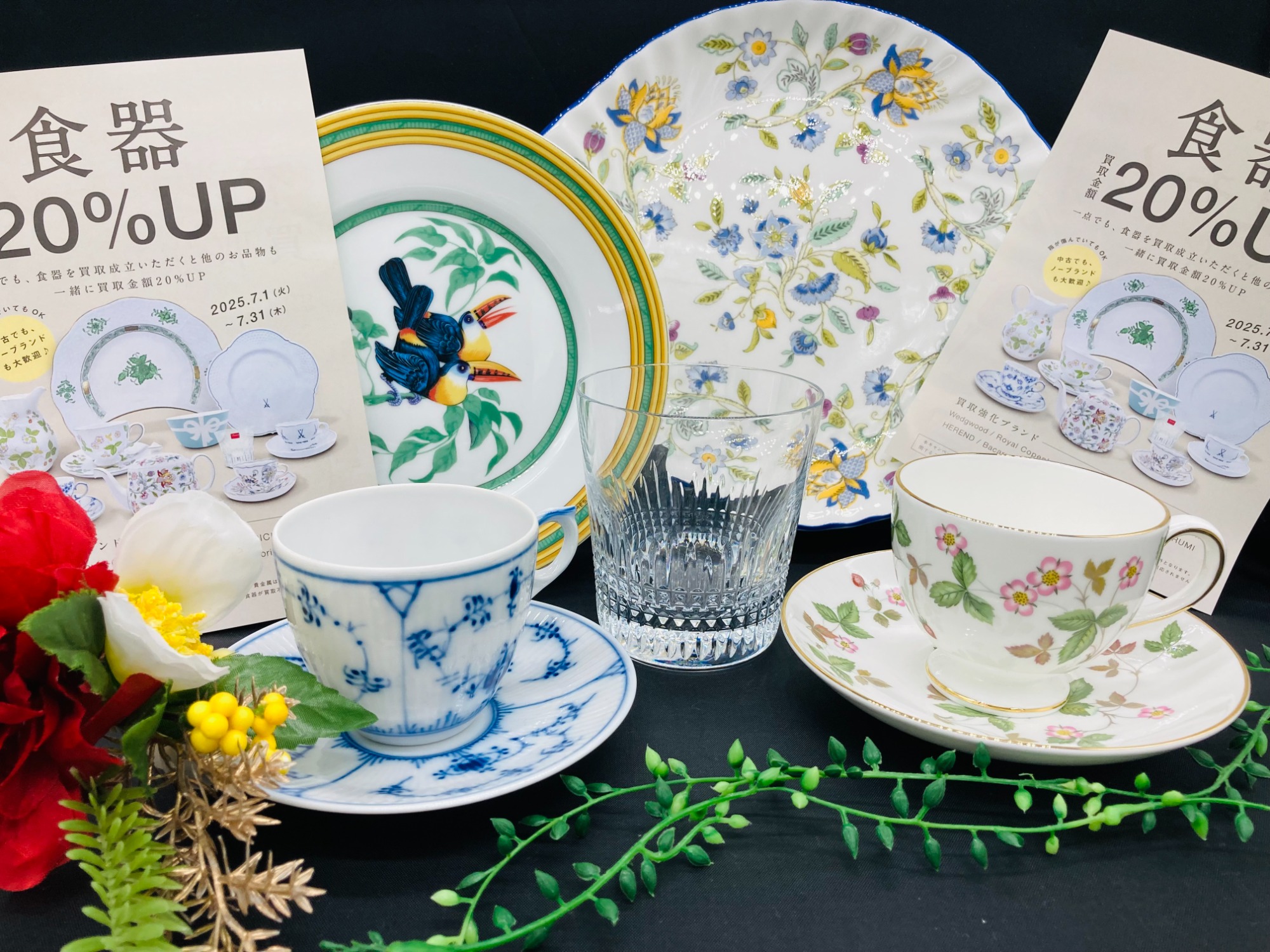 7月は食器買取20%UPキャンペーン!ブランド洋食器は中古でも大歓迎!ぜひお持ち込みください!