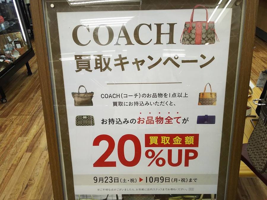 9/23(土)-10/9(月・祝)までCOACHの買取UPキャンペーンを開催しております!