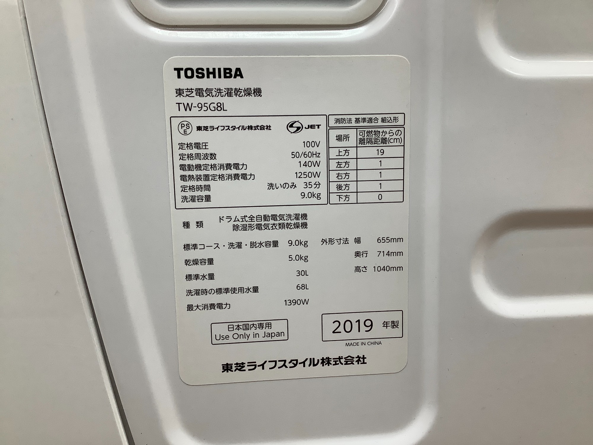 製造年数 :2019年製
