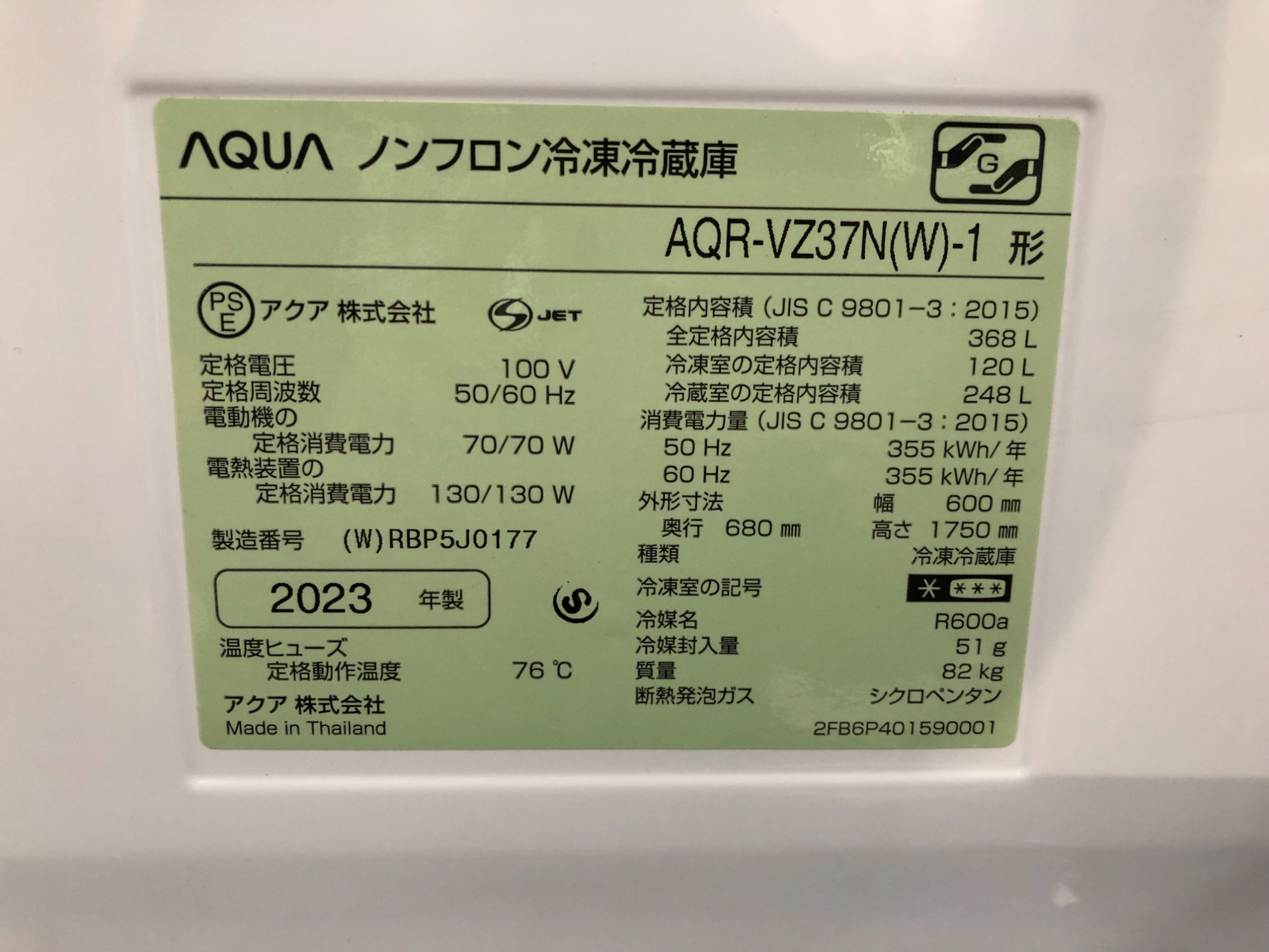 AQUA(アクア)より 2023年製 4ドア冷蔵庫 AQR-VZ37N が入荷しました!!