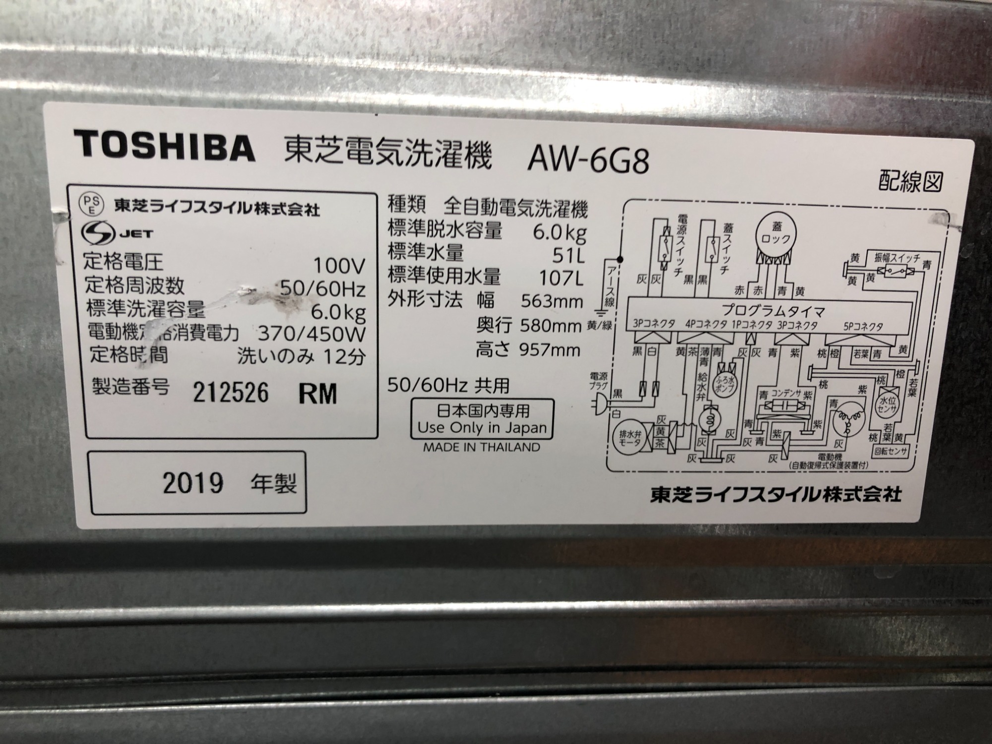 TOSHIBA 東芝 6.0kg 全自動洗濯機 AW-6G8 2019年製 入荷しました!!