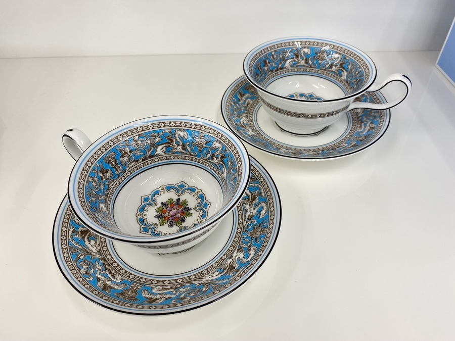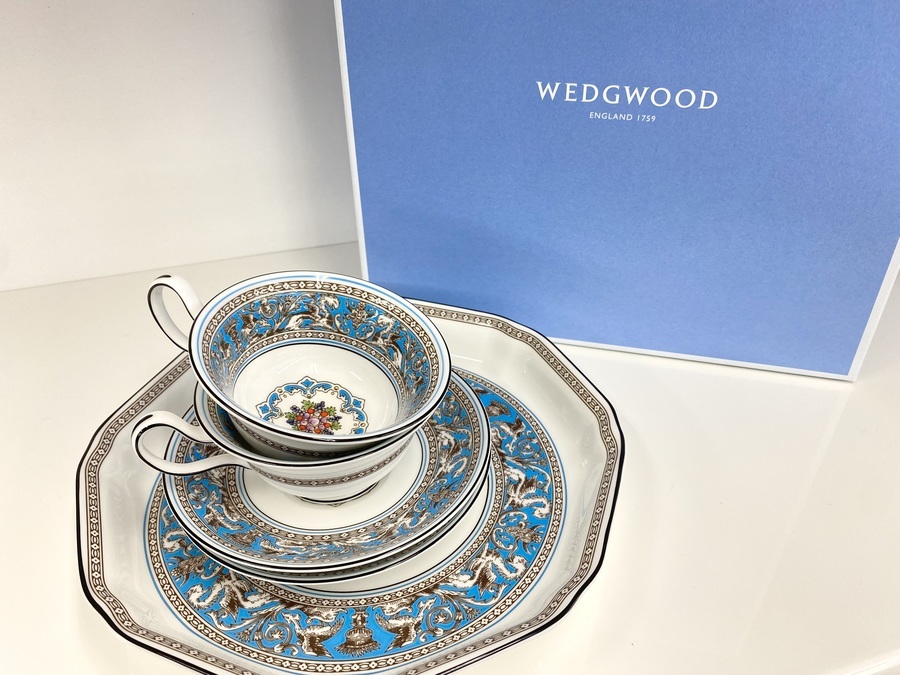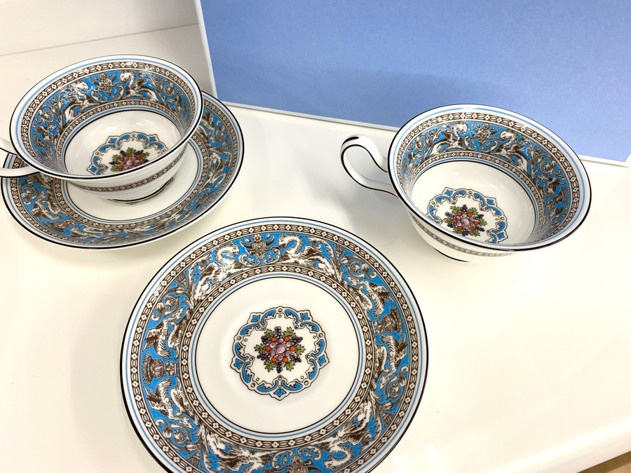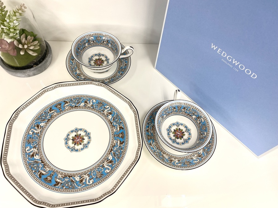 Wedgwood(ウェッジウッド)のフロレンティーン・ターコイズは、19世紀後半から作られている伝統的な模様の一つになります。食器の柄としては少し特徴的ですが、同時に人気のあるモデルにもなっています。
