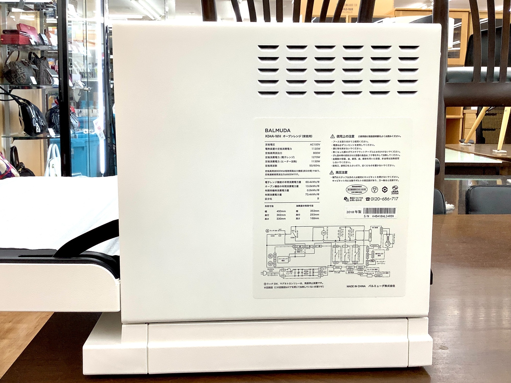 ブランド:BALMUDAアイテム:オーブンレンジ型番 :K04A-WH2018年製