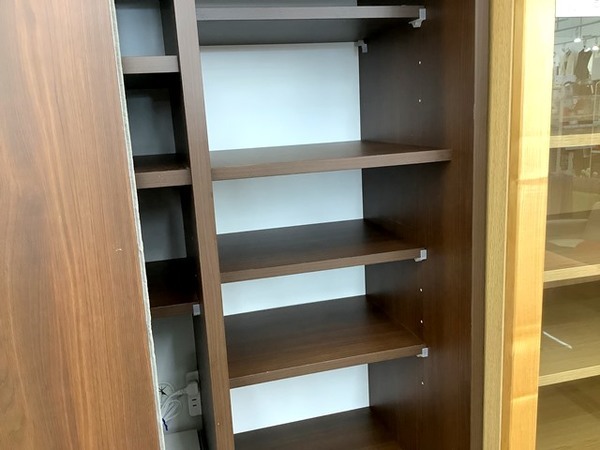 スライド扉を動かすと見える右側には自由に高さを変えられる棚があり、