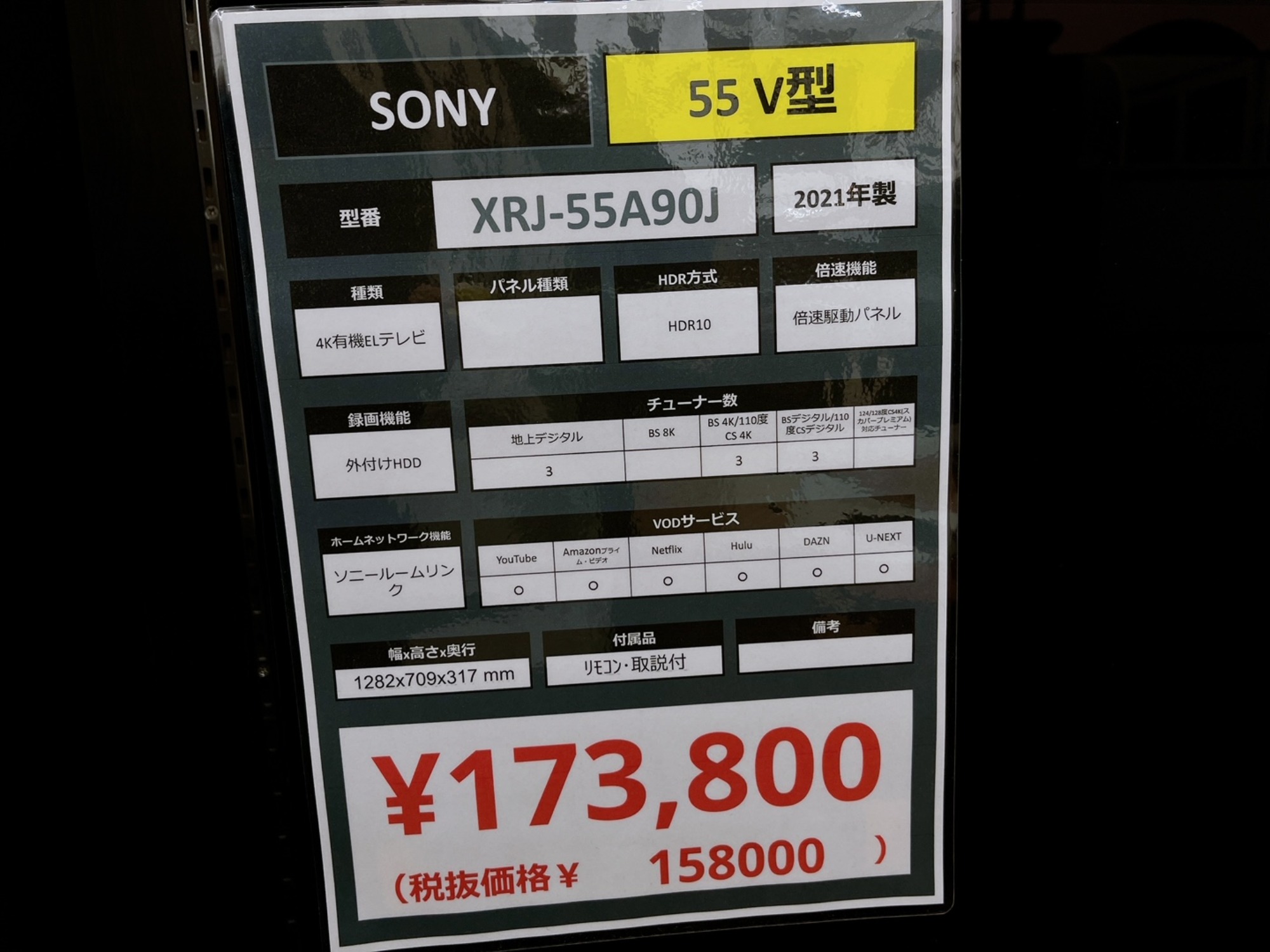 SONYより55インチの大型テレビが入荷