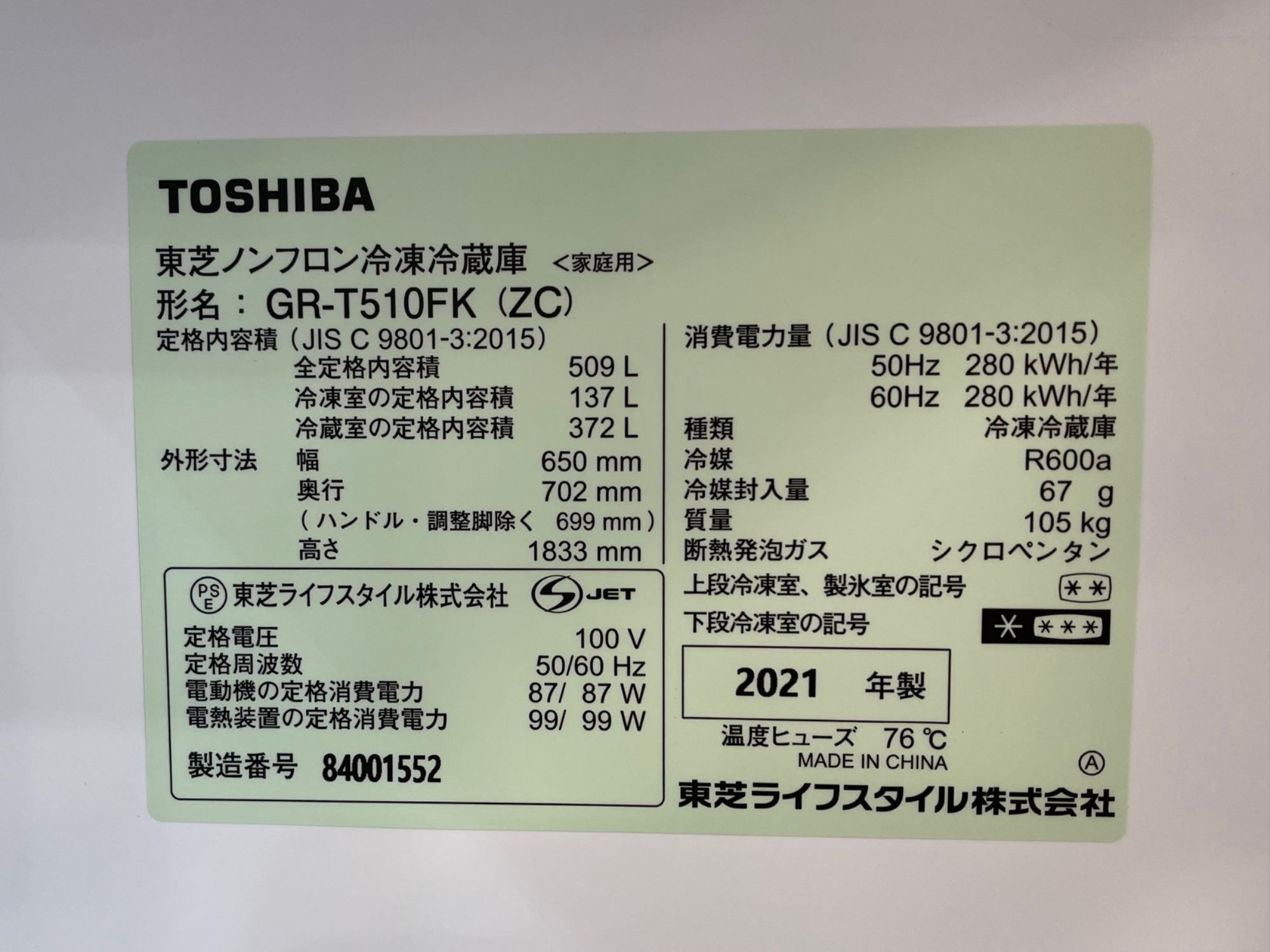 型番 : GR-T510FK