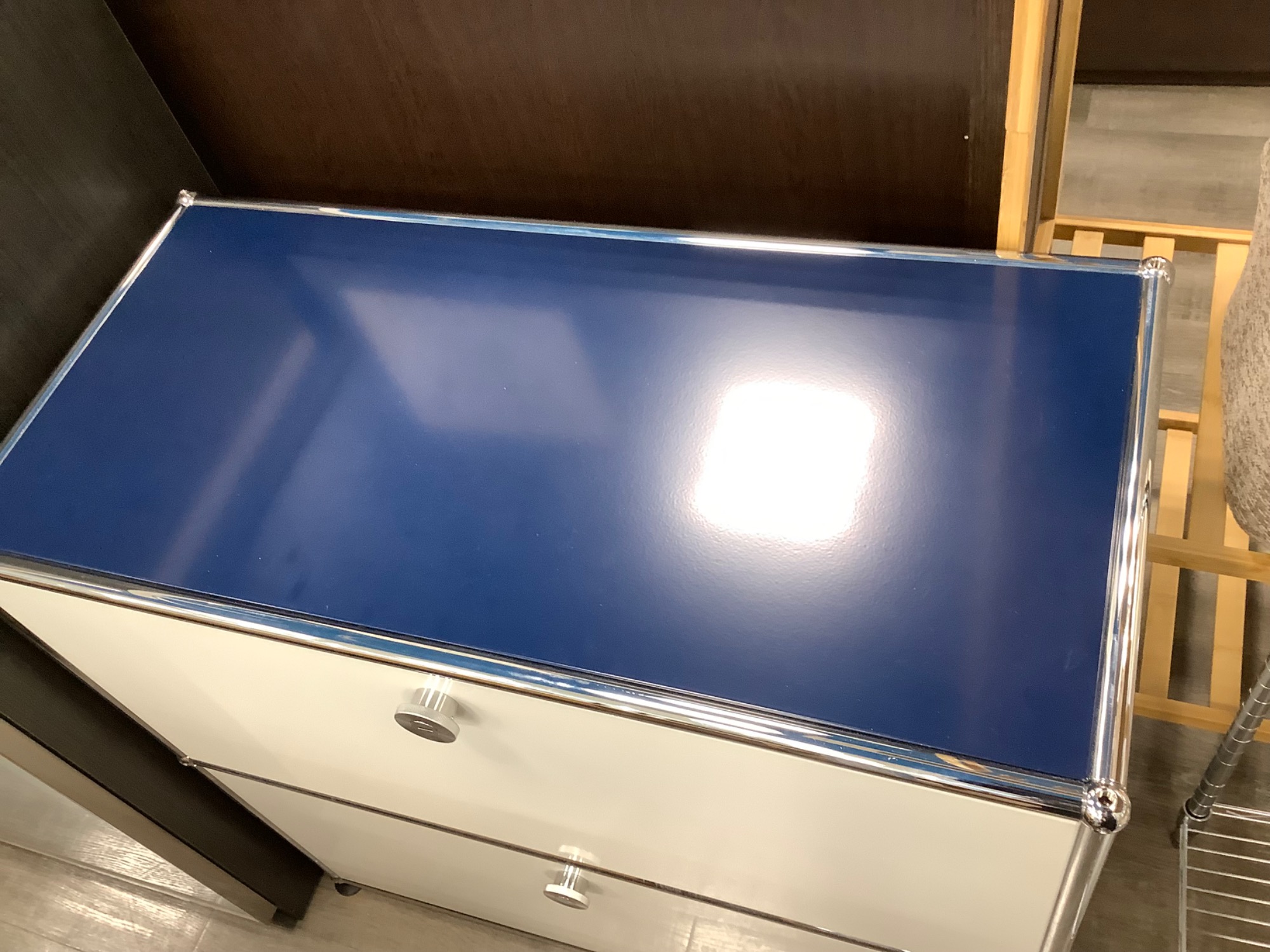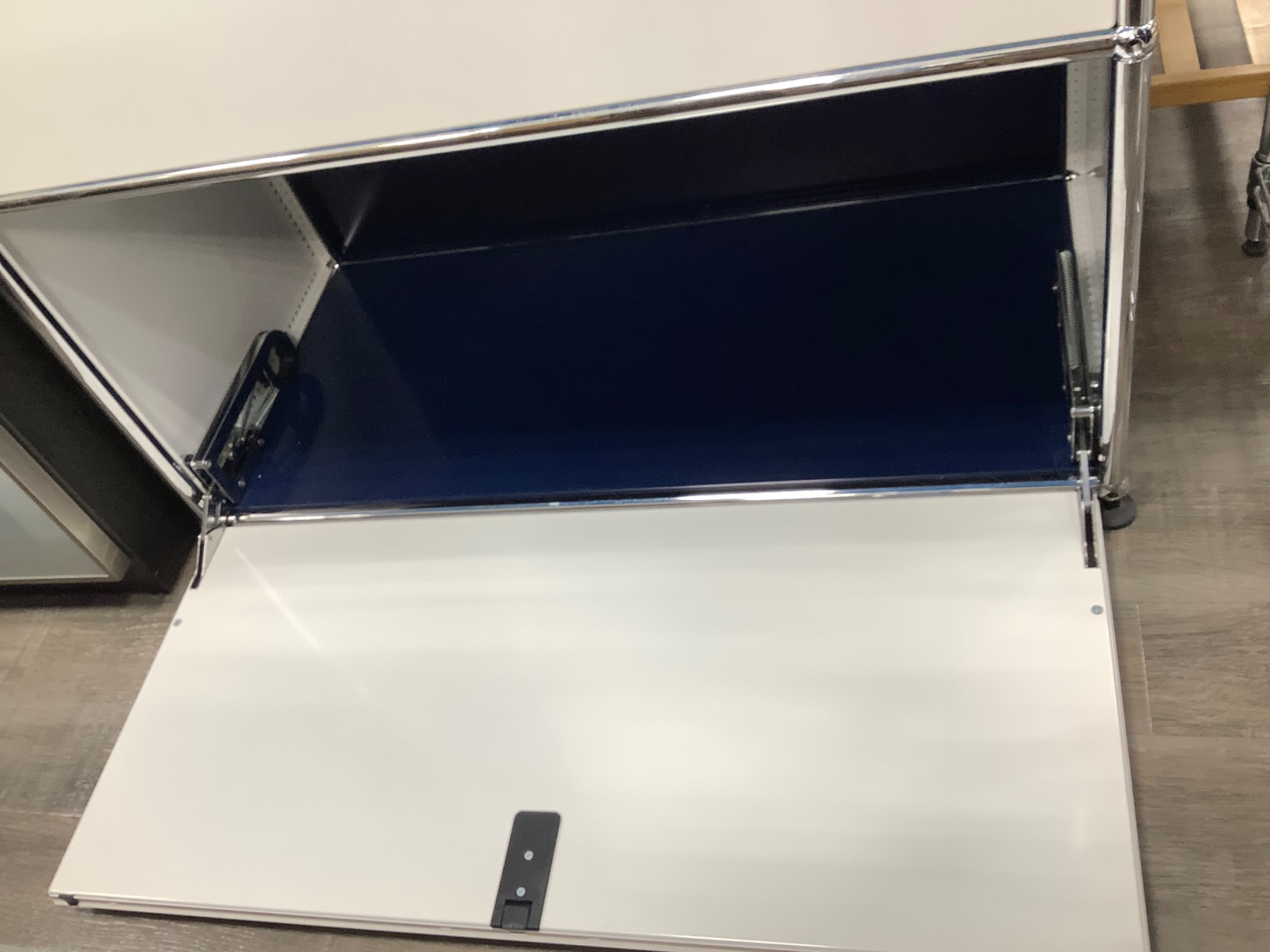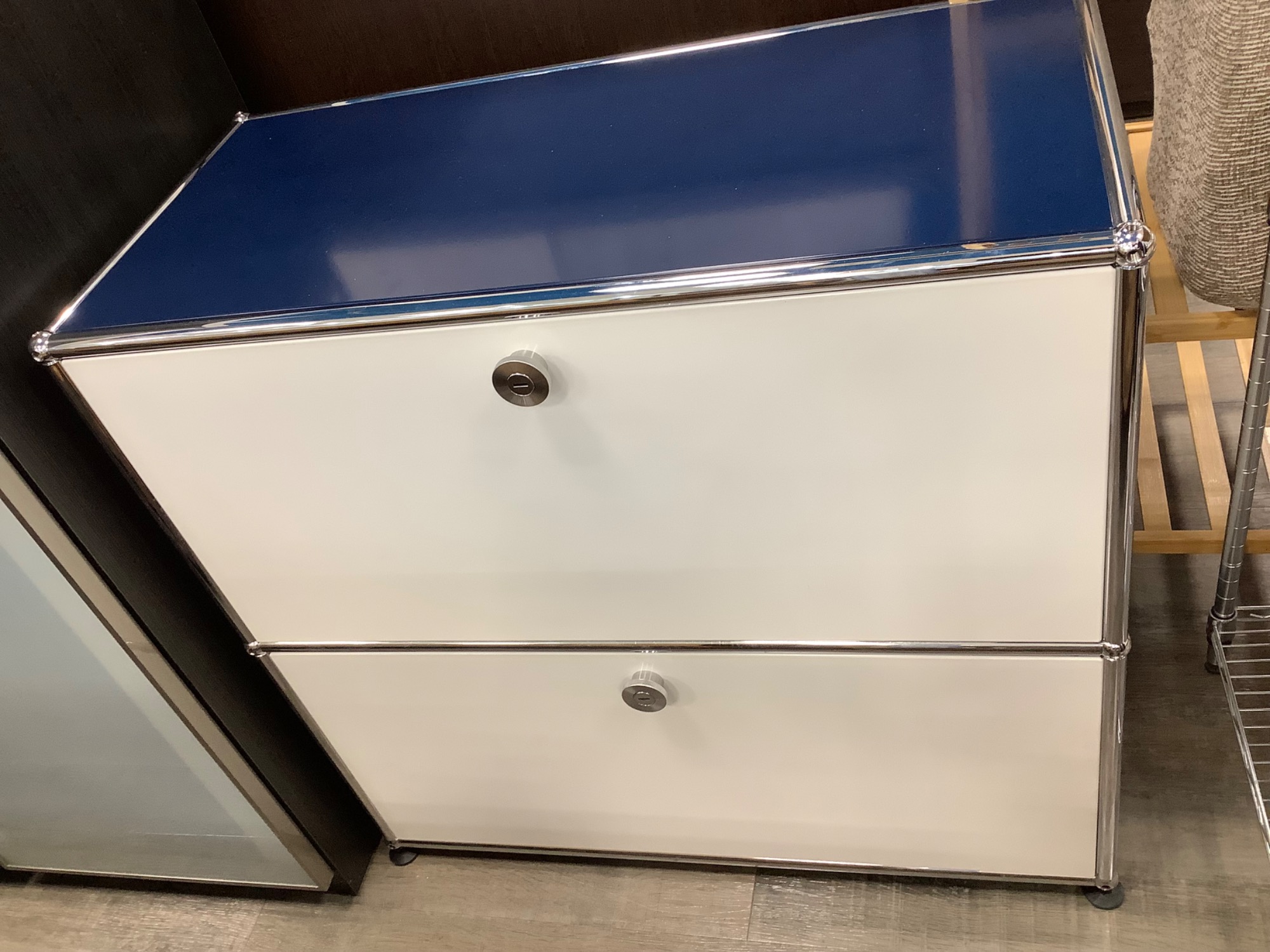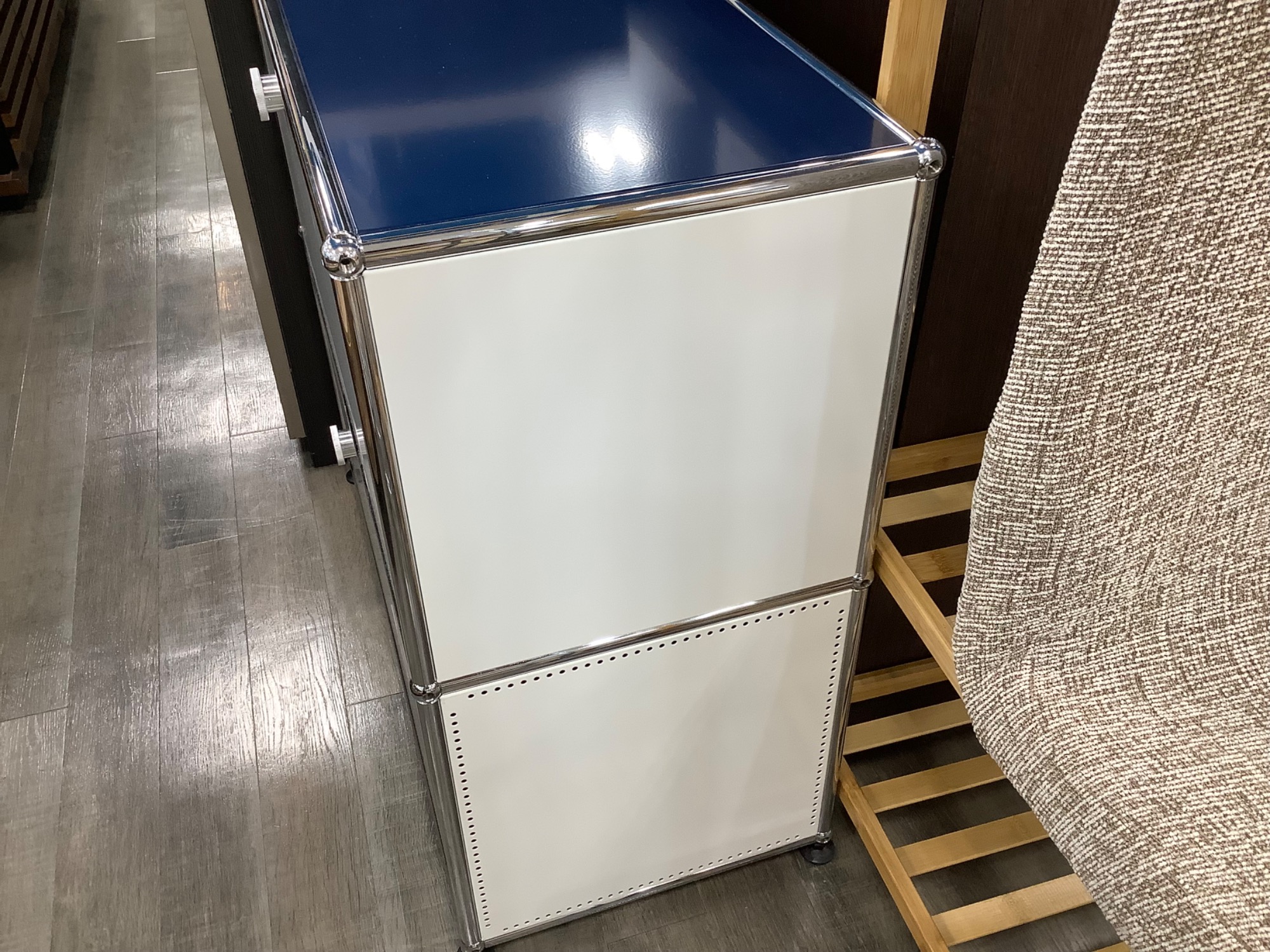 本日は収納家具 万能収納 キャビネット USMハラー フラップ扉_2段 ブルー×ホワイトのご紹介!