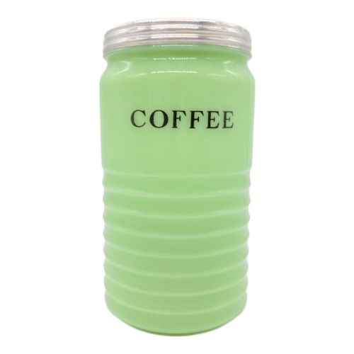 ぽってりとした厚みのあるガラス、懐かしさを感じる書体の「COFFEE」の刻印、使い込まれた味のある風合い…。保存容器としての密閉性も高く、実用品としてもおすすめです。 グリーン系のヴィンテージ雑貨を集めている方、アンティークの魅力に惹かれる方にぴったりの逸品。