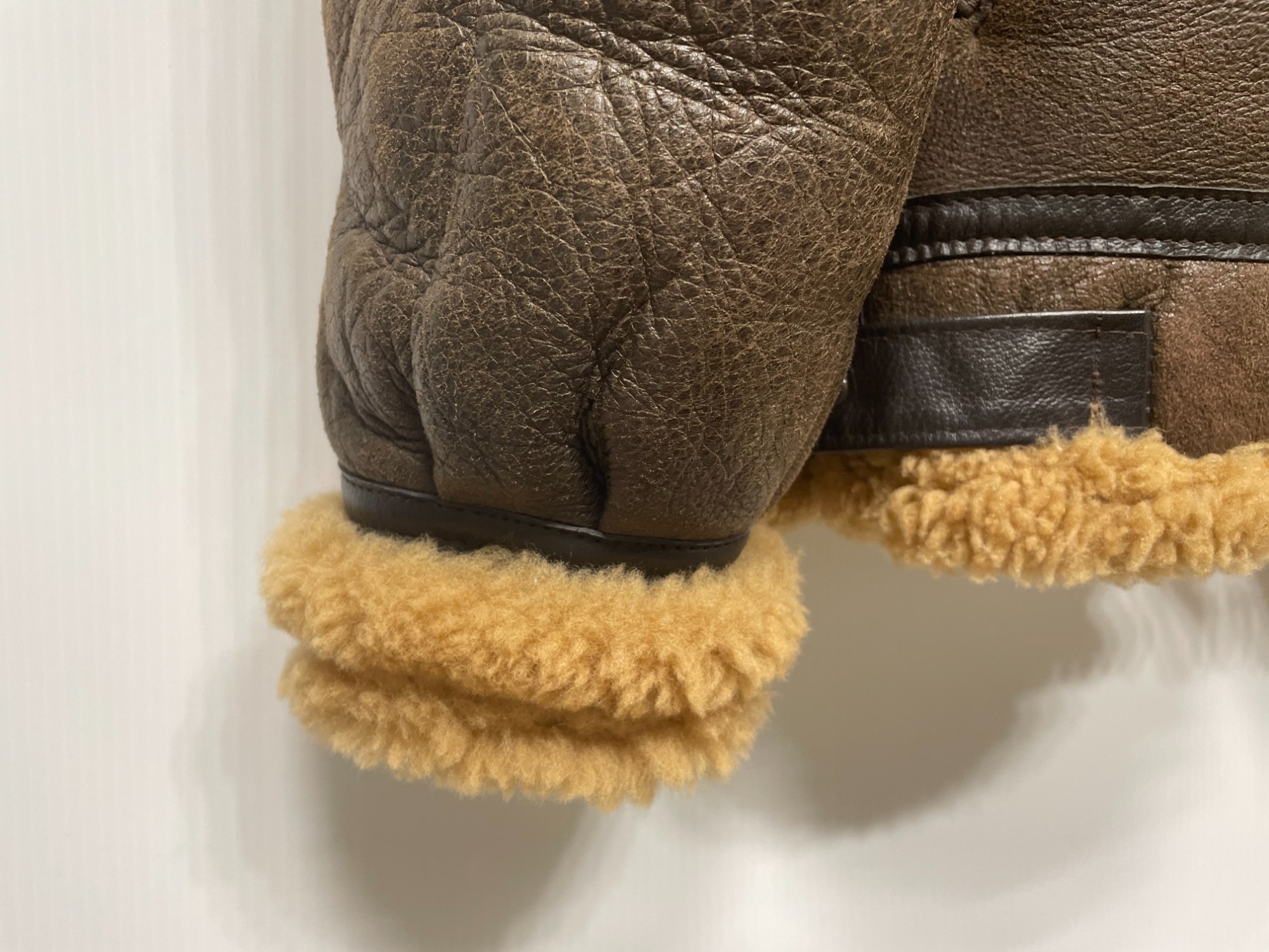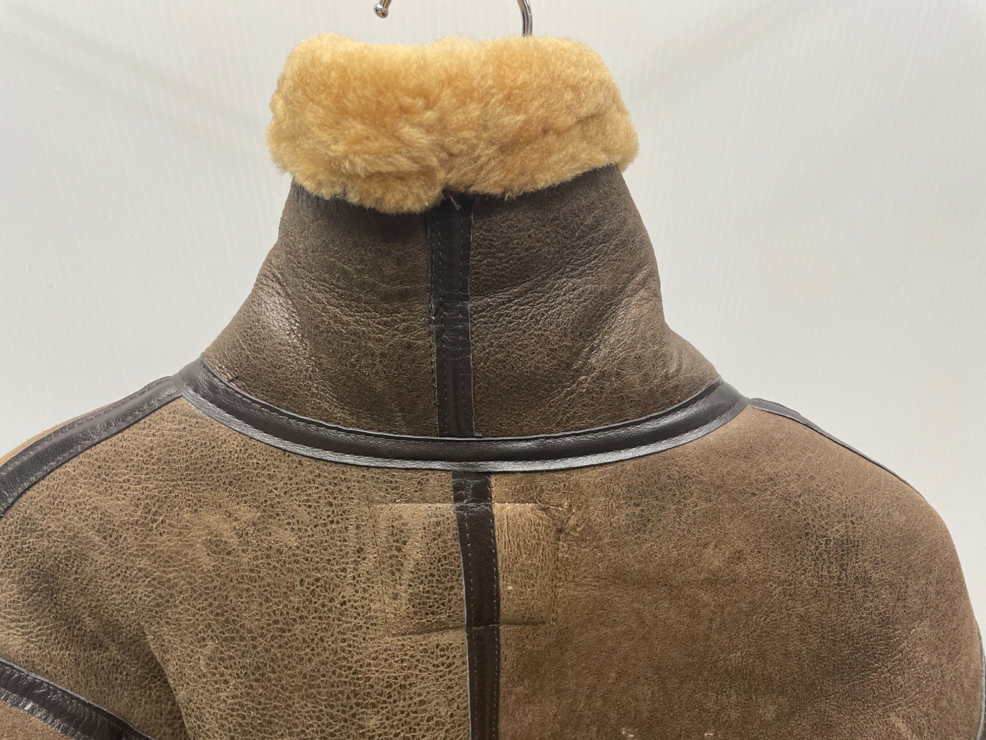 アメリカ陸軍航空隊のフライトジャケットをルーツに持つ、重厚でクラシックな一着です。厚みのあるシープスキンに、内側はふかふかのムートン仕様で保温性は抜群。真冬の寒さもまったく気にならない暖かさです。