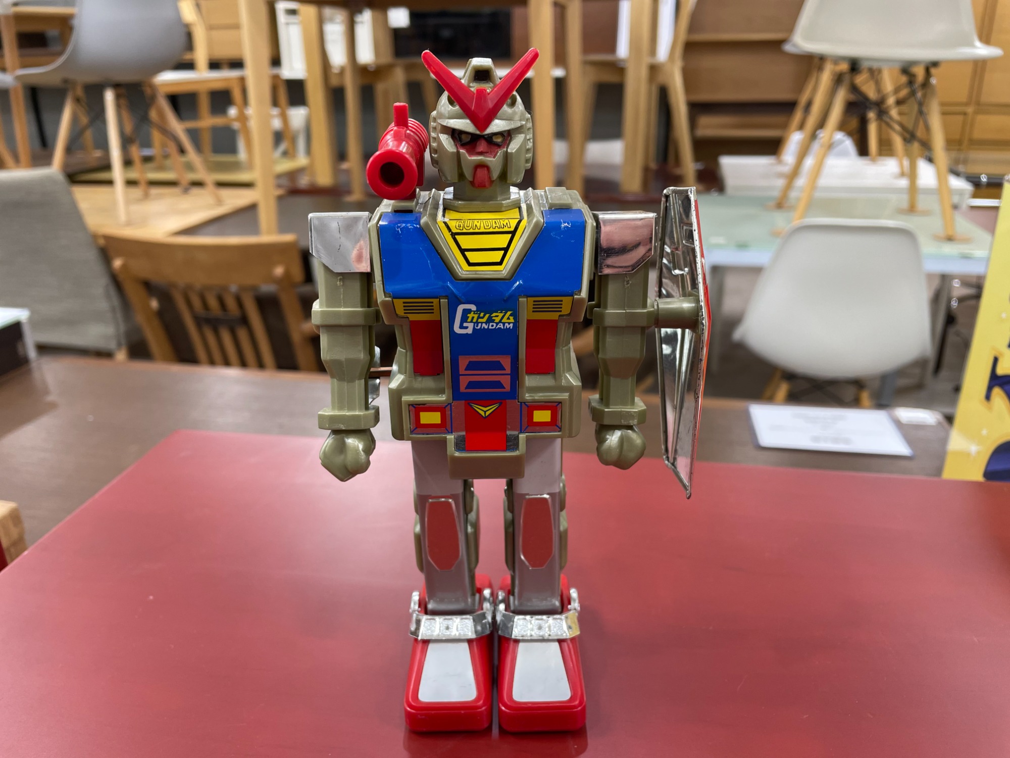 アニメ『機動戦士ガンダム』放映当時にクローバーから発売された、貴重な歩行ガンダムです。 腰部にあるゼンマイを巻いて足を動かして実際に歩行するギミックを搭載。 当時ならではの重量感ある造形とレトロなフォルムが魅力です。 現在では非常に入手困難なアイテムで、ガンダムファンや昭和玩具コレクター必見の逸品です。