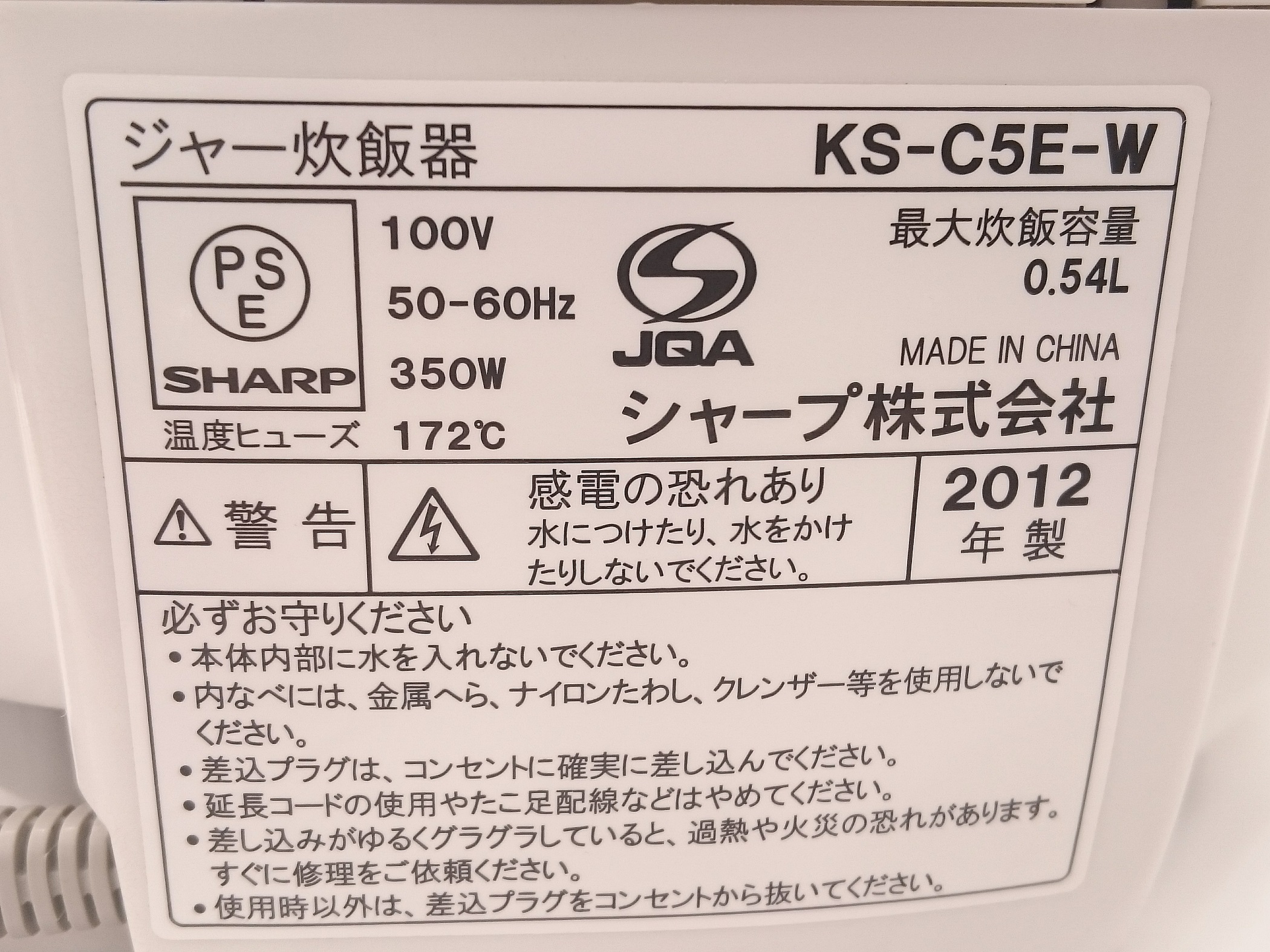SHARP〈シャープ〉の2012年製3合炊飯器をお求めやすい価格で提供いたします!