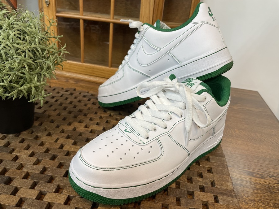 大人気AIR FORCE 1よりパイングリーンのステッチで構成された一足になります。
