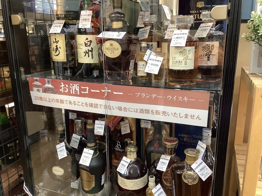 当店ではお酒を幅広く展示しております。