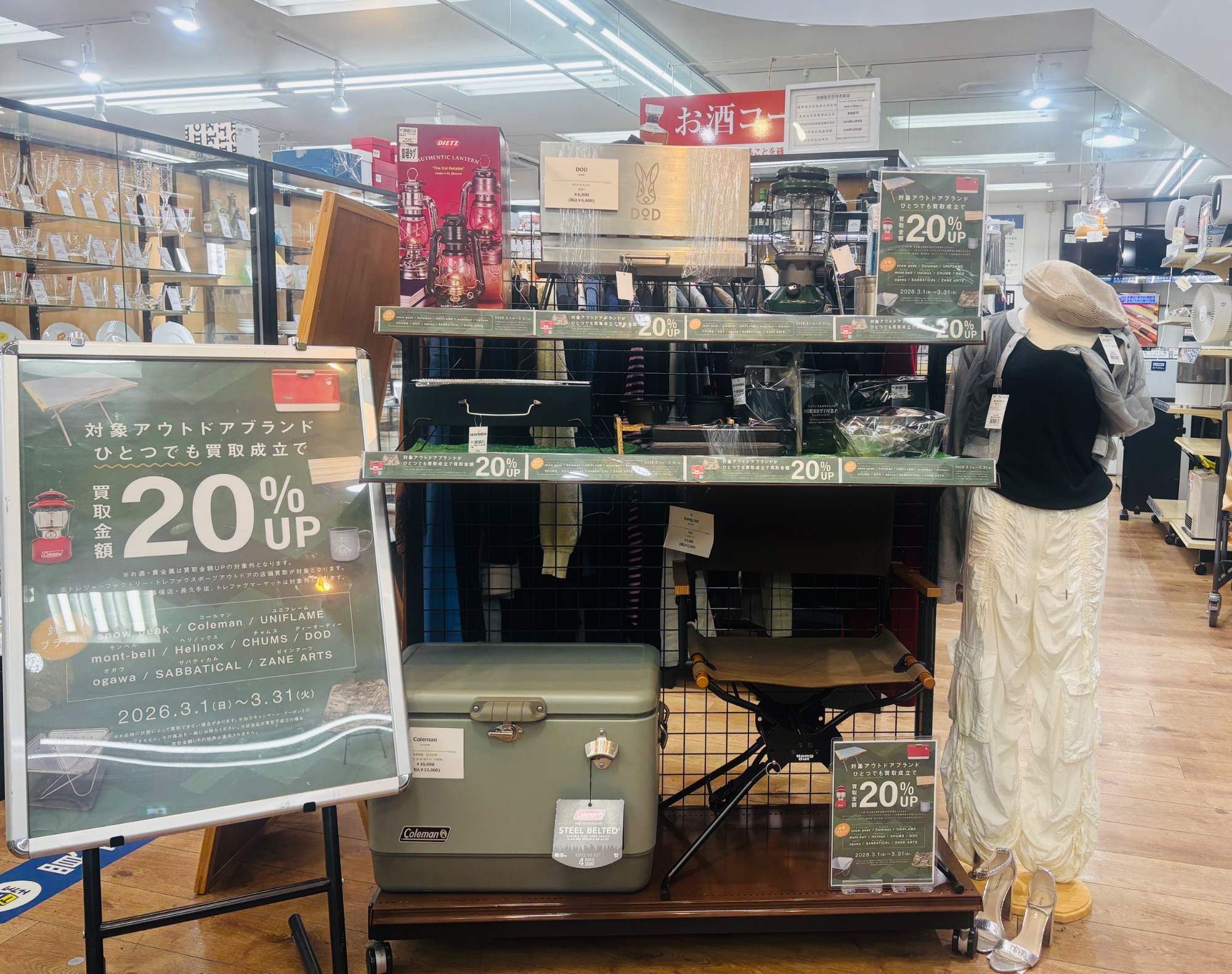 3月はアウトドアブランド買取20%UPキャンペーン!スノーピーク、コールマン、ユニフレームなどのアウトドアブランドはぜひお持ち込みください!