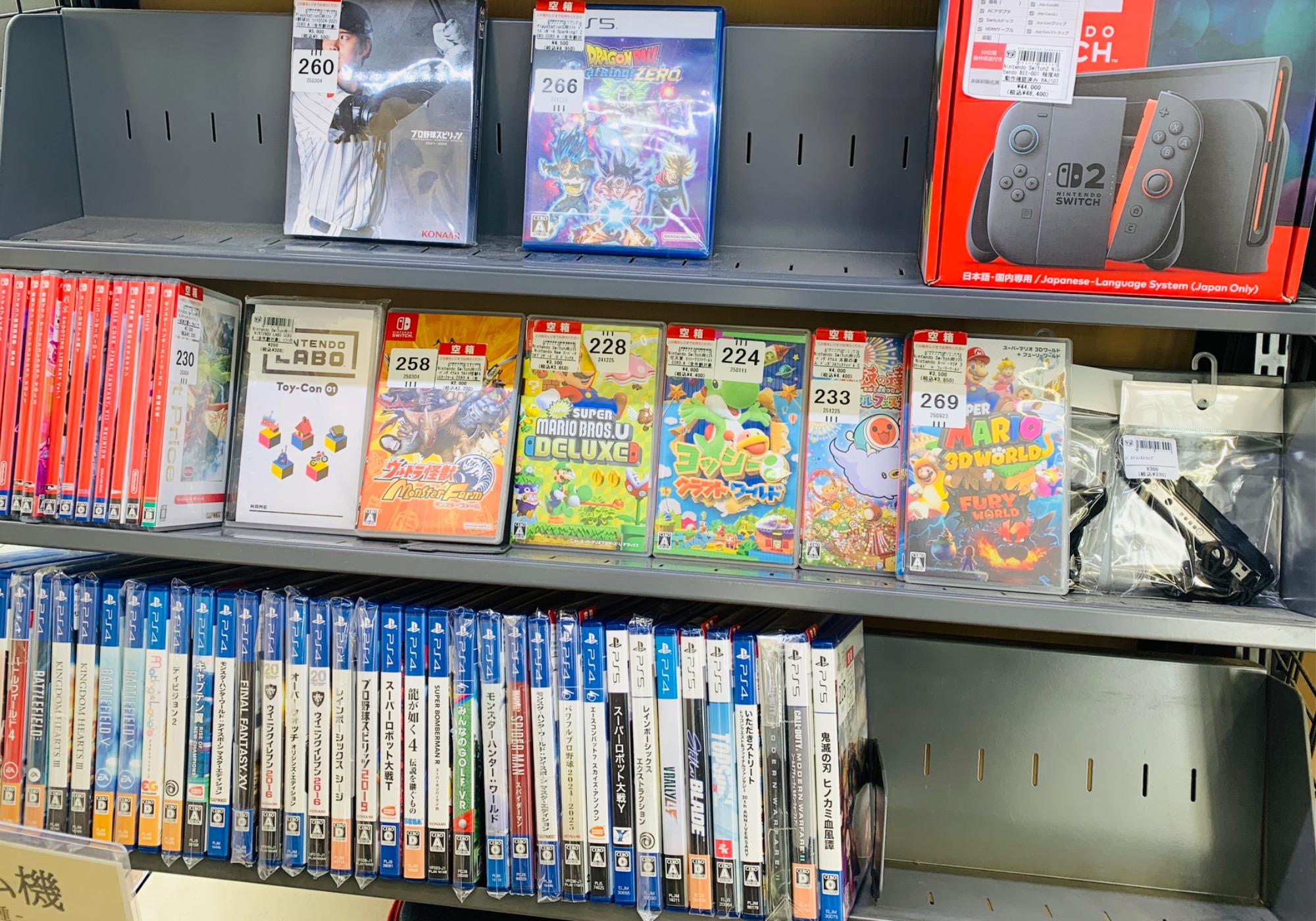 また、2階売り場ではファミコンカセットや3DSカセットなどの
