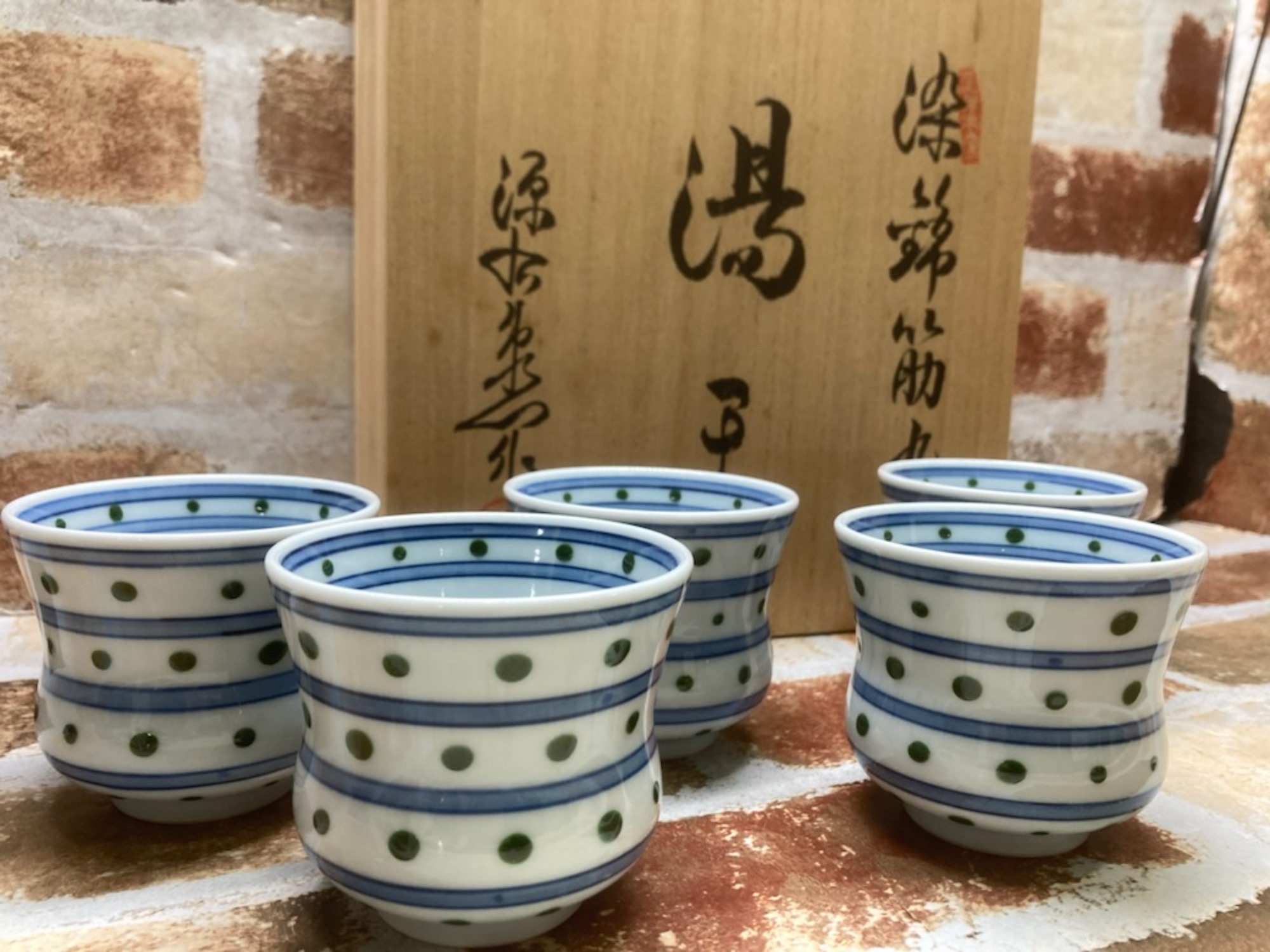 【和食器・洋食器買取募集】本日は和食器より源右衛門窯 染錦筋丸紋湯呑 5ケ揃え入荷のお知らせです!