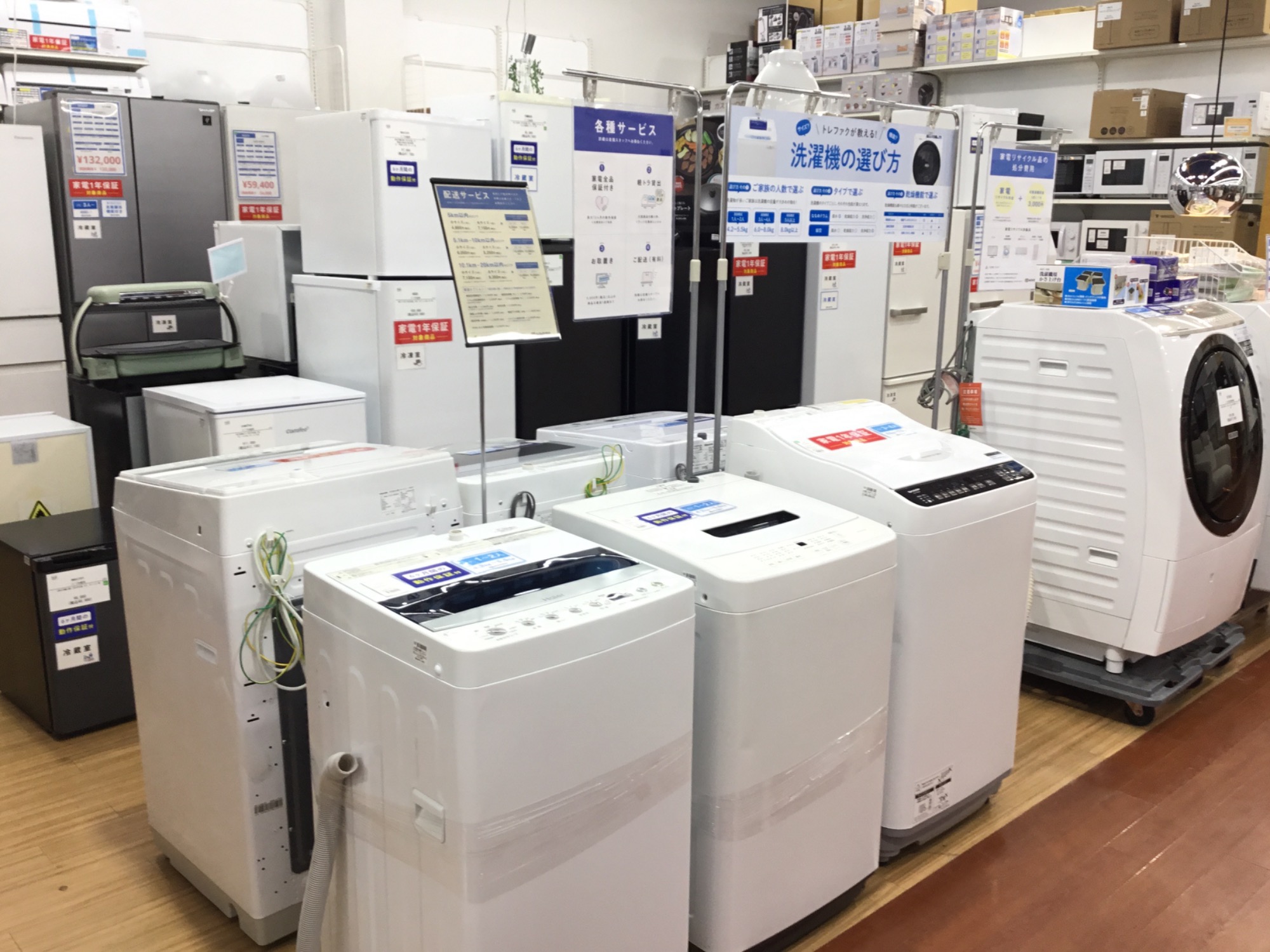 各種洗濯機・冷蔵庫・テレビ・清掃用品など新生活など必要なアイテムが一度に揃えられます!