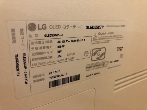 備考:4K対応有機ELテレビ