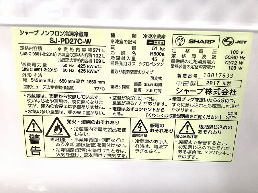 型番  :SJ-PD27CW