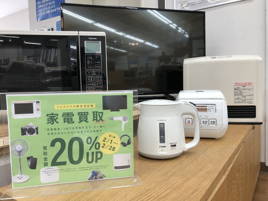 2月は家電買取20%UPキャンペーン実施致します!