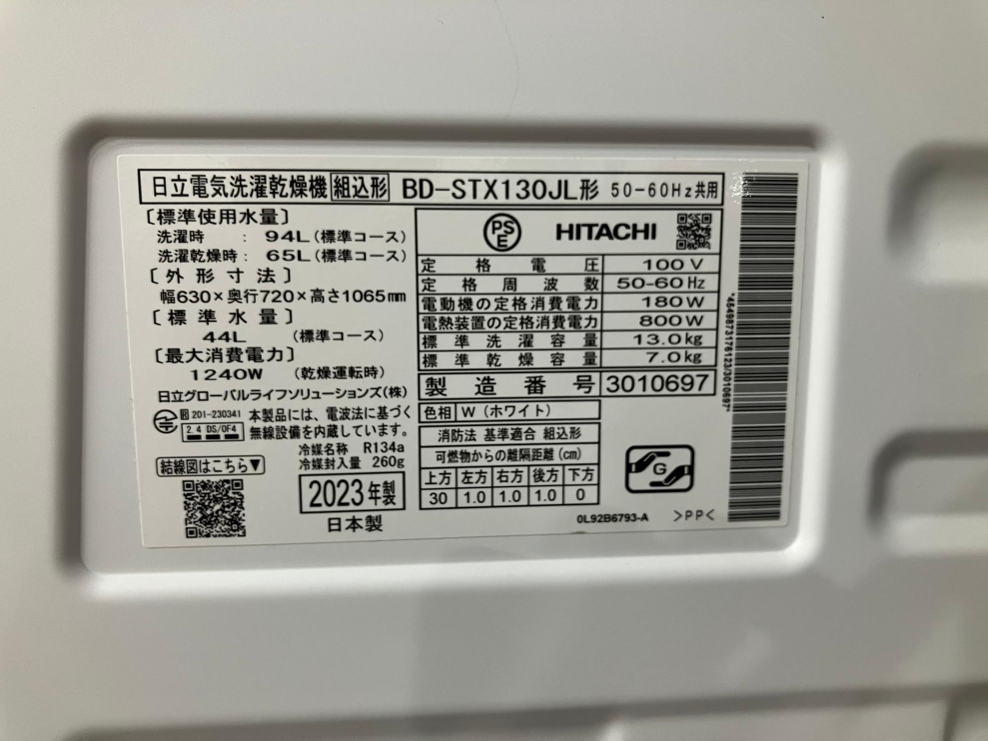 【3F家具家電多数展示中!】HITACHI【ヒタチ】のドラム式洗濯乾燥機 BD-STX130JL 7.0KGが買取入荷しました!