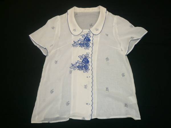 花柄刺繍とプリントをあしらえたブラウス