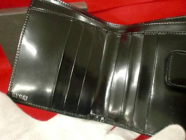 エナメルブラックのボディに銀色のGUCCIの刻印がシャープな印象を与えてくれる