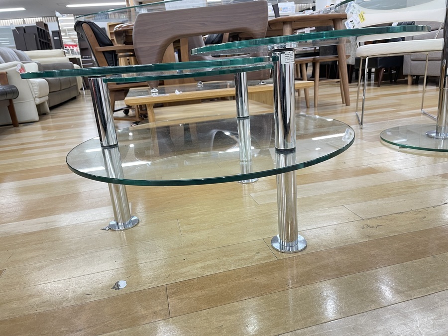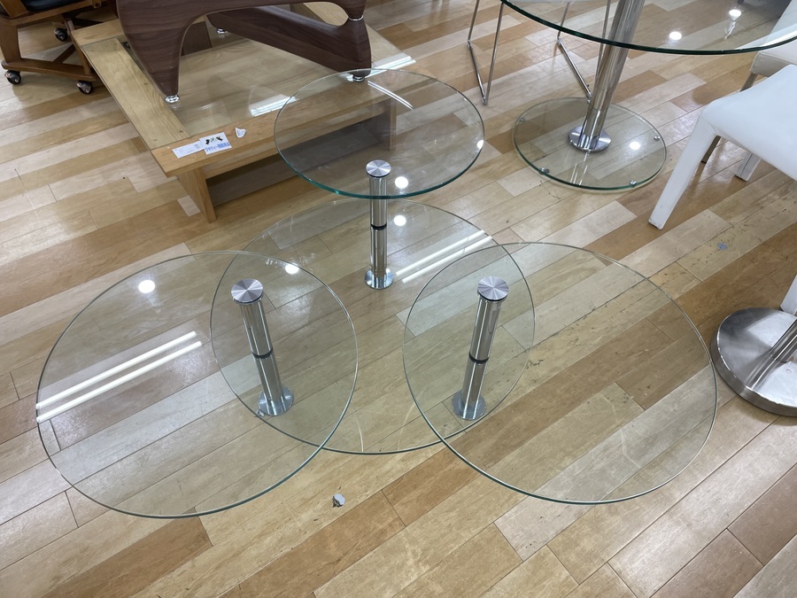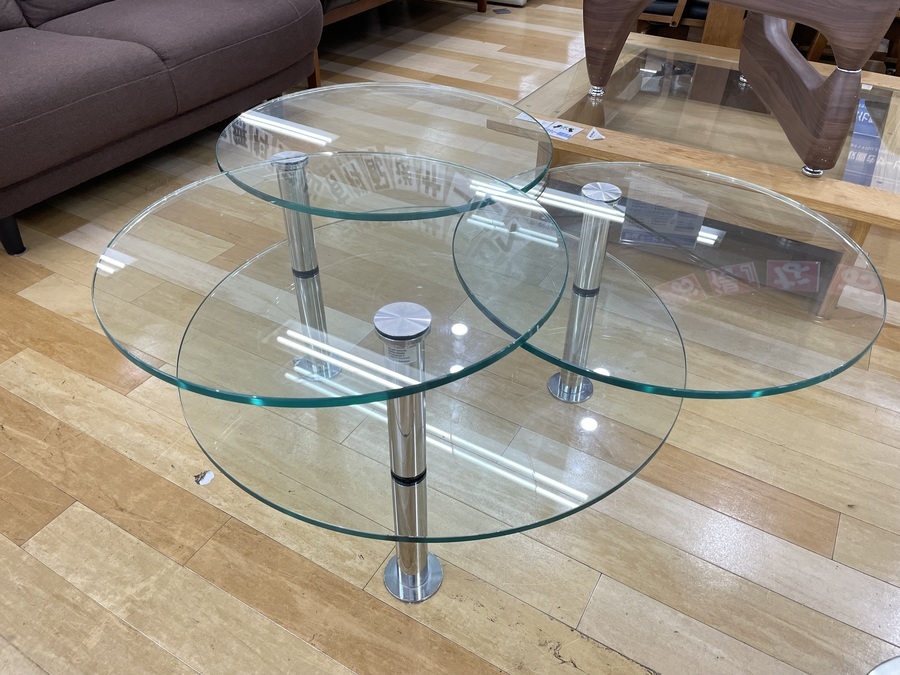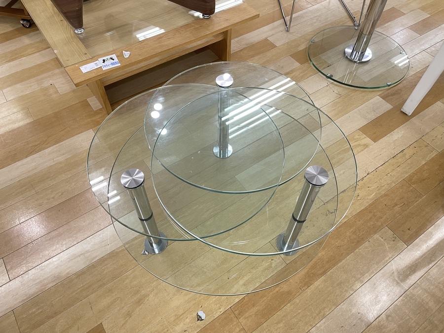 デザイン性抜群のガラストップテーブルを