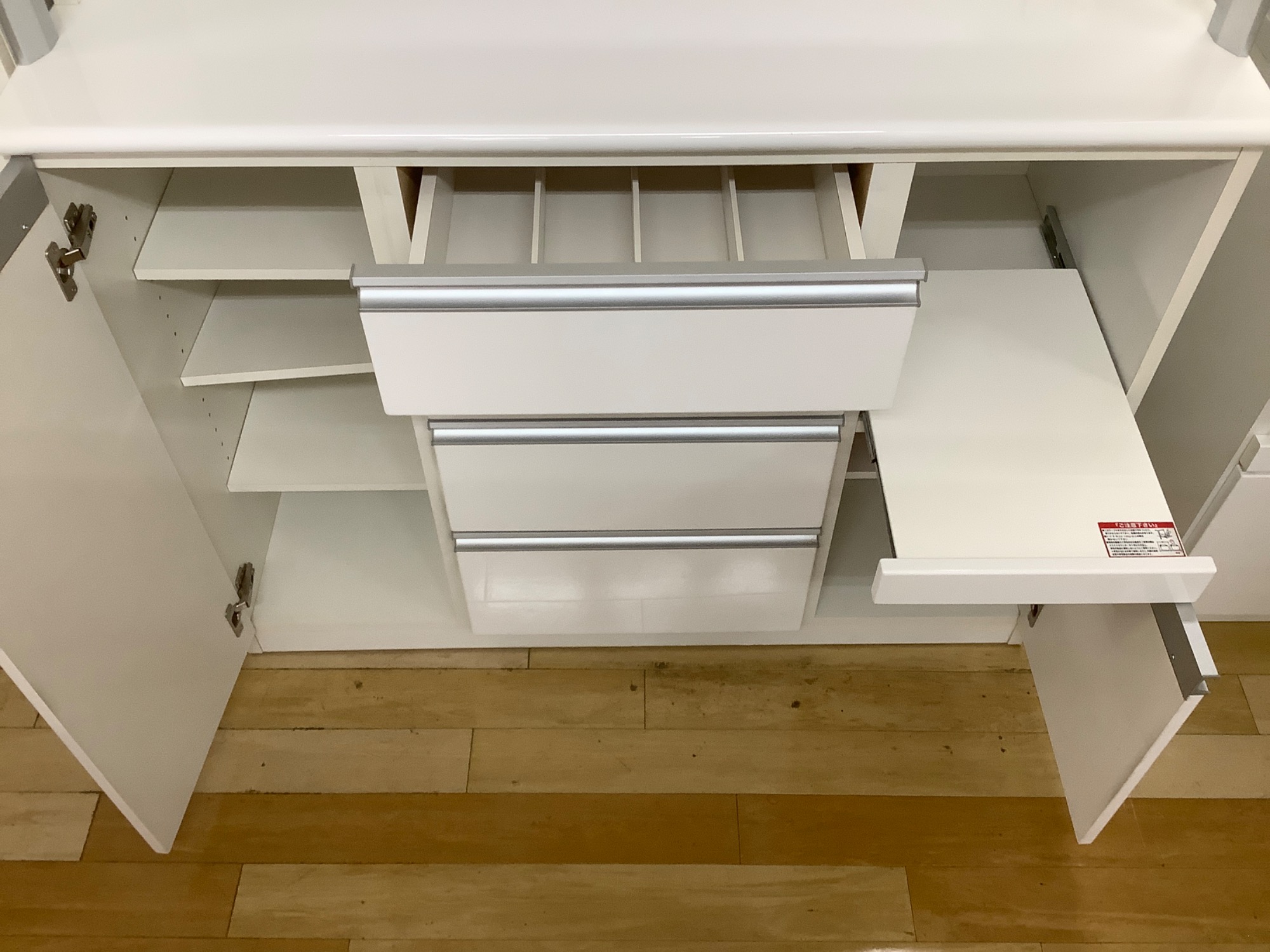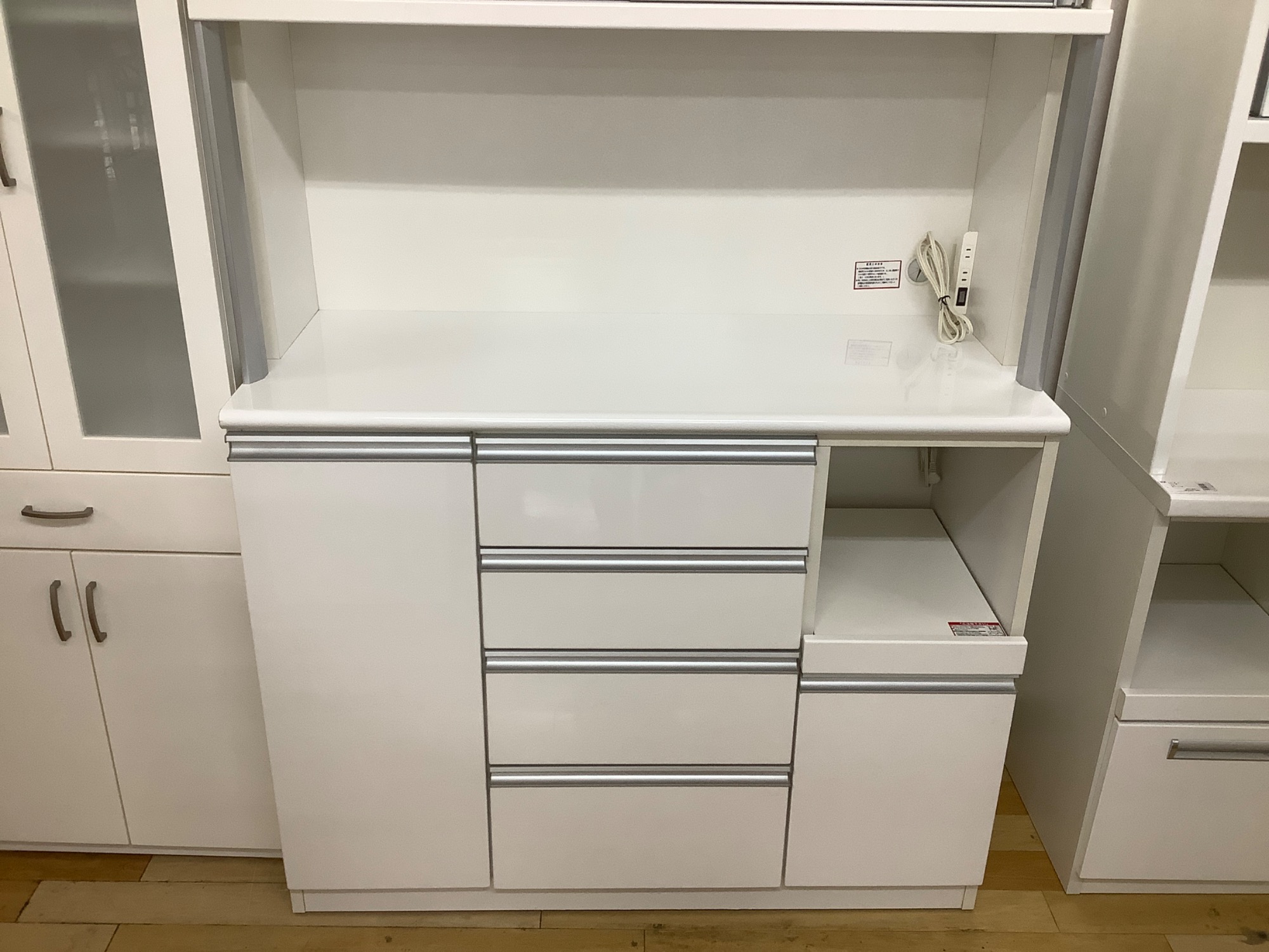 こちらも左の棚と右下の棚は可動式ですので、お好きな高さに合わせてお使いください。