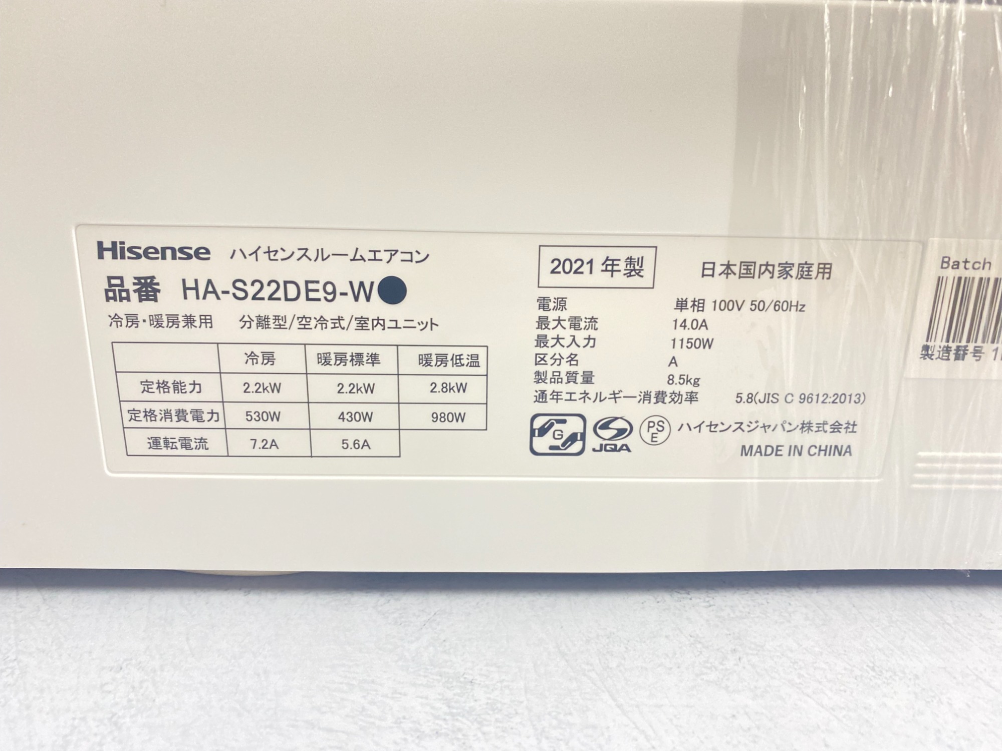 メーカー:Hisense(ハイセンス)