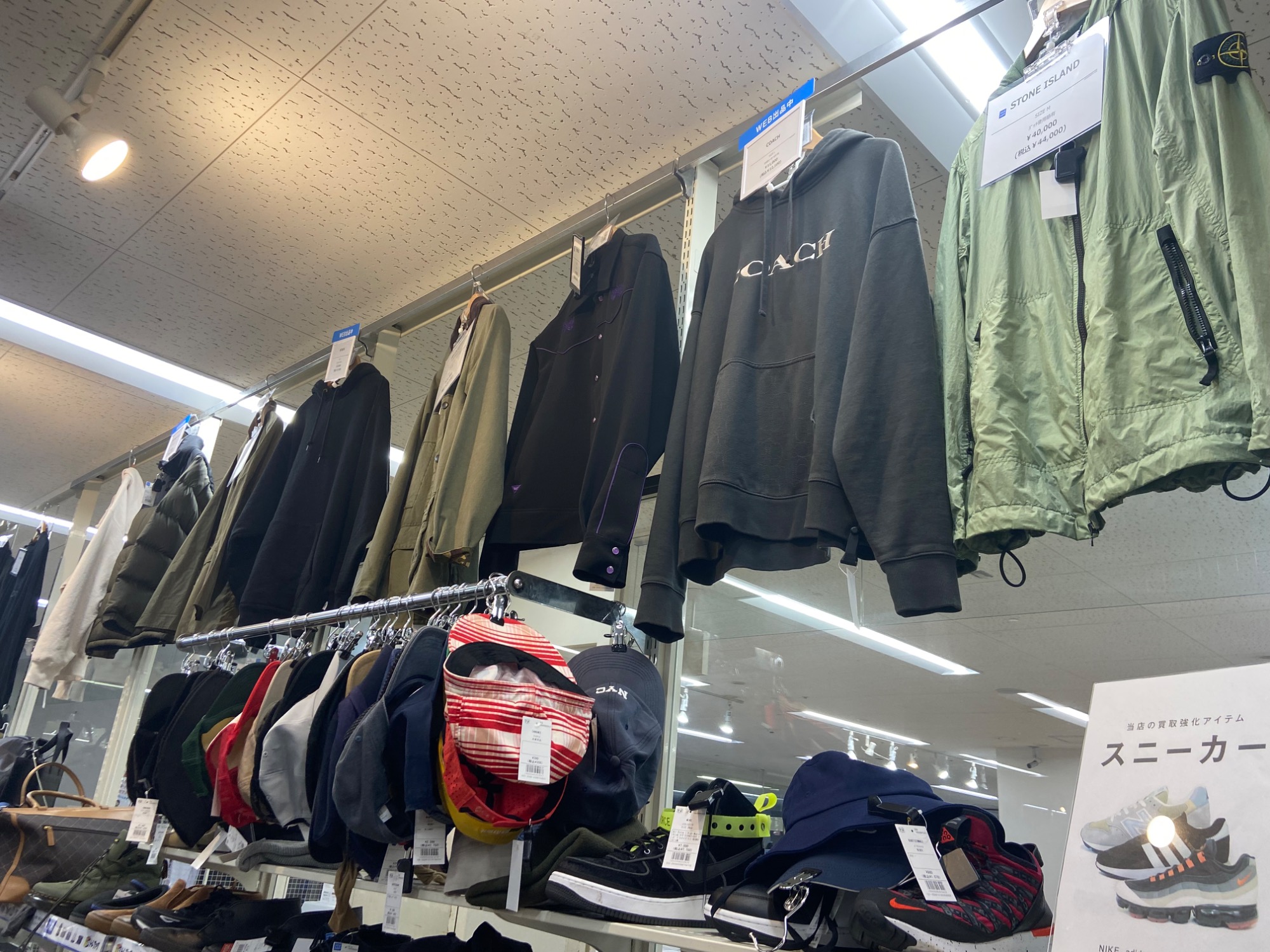 衣類の他にも靴やバッグ、帽子など幅広く展開しております!!