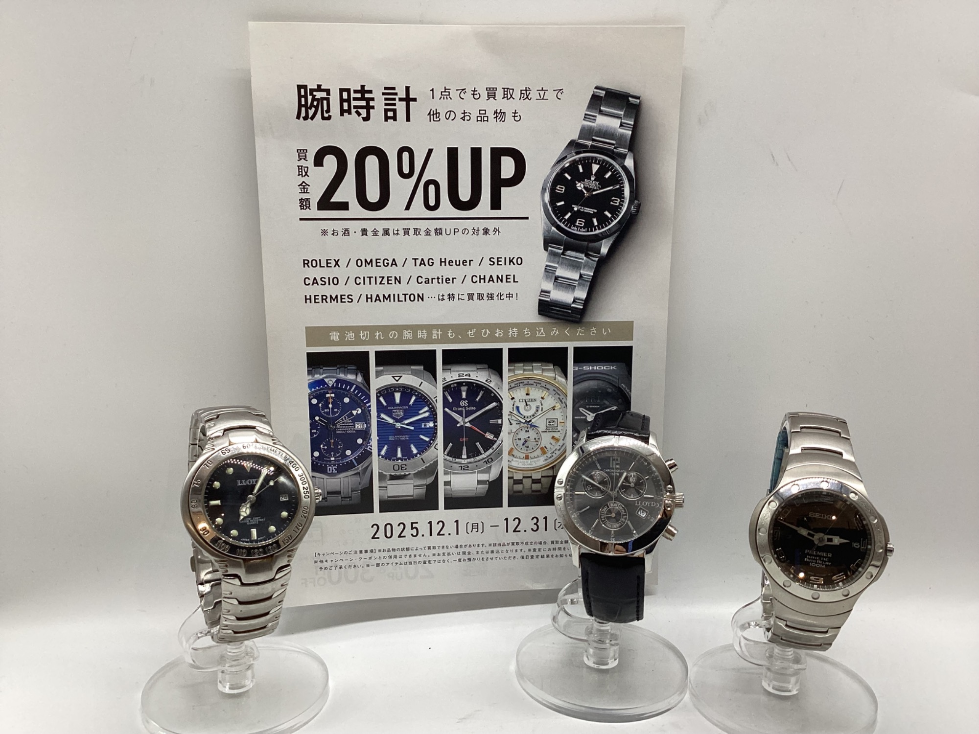 12月は腕時計買取20%UPキャンペーン!SEIKO、CITIZENなど、ぜひお持ち込みください!