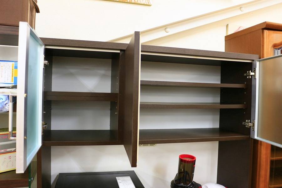 上部扉のガラスは収納物のシルエットをぼかしてくれるミストガラスになっているので、生活感を抑えることができます☆