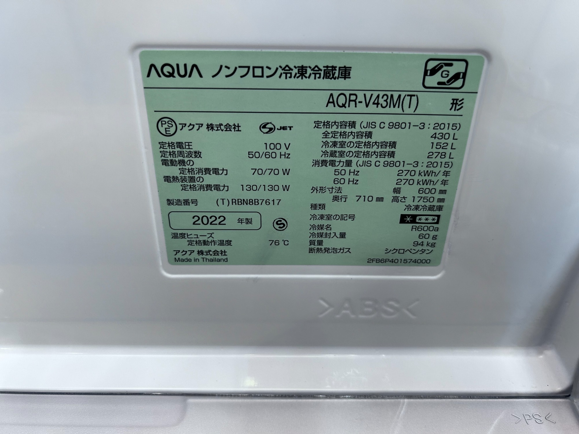 型番 :AQR-V43M