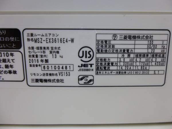 型番 → MSZ-EX3616E4-W