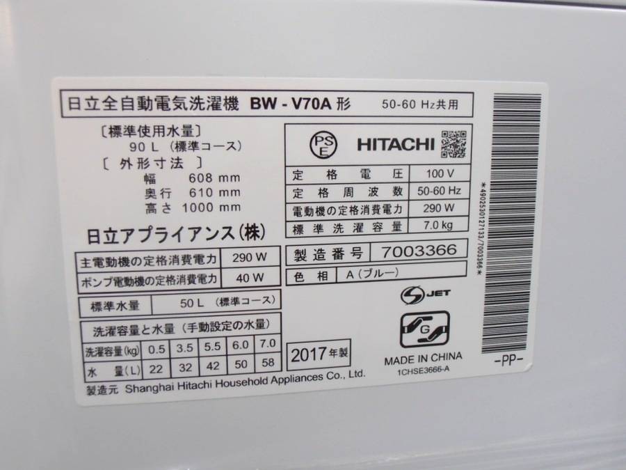 HITACHI(日立)の7.0kg全自動洗濯機「BW-V70A」をご紹介!!