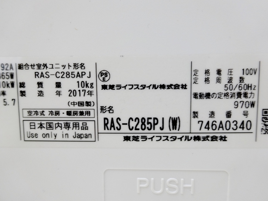 型番   : RAS-C285PJ(W)