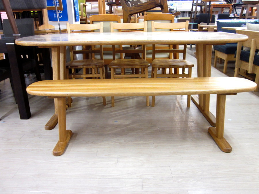 名古屋徳重店 店舗TOP 店内紹介 新入荷ブログ 地図・アクセス 名古屋市にあるリサイクルショップ 名古屋徳重店からの新入荷&買取情報です! 飛騨産業(ヒダサンギョウ)のベンチダイニング5点セット 2019-11-01 #生活家具 #テーブル #ベンチダイニング5点セット #飛騨産業 #中古家具 名古屋 こちら公開後3ヶ月以上の記事です。商品の売り切れなど情報が古い場合があります。 ・最新の掘り出し物入荷情報はこちら ・いま店頭で使えるクーポンはこちら ブランド : 飛騨産業(ヒダサンギョウ)シリーズ : bagutte life(バゲットライフ)商品名 : ベンチダイニング5点セットカラー : ナチュラル参考価格 : 約30万円店頭価格 : 79,800円+税お問い合わせ番号:1057001511454 ダイニングテーブルとベンチシート、チェアの5点セットです。木目を活かした柔らかなデザインと風合いのお品物です。通常使用程度の使用感はございますが、本体に目立つヨゴレやダメージはございません。天板の保護カバーには使用感、少々ヨゴレがございます。詳しいご状態については店頭にてお確かめください。その他にも多くの品揃えでお客様をお待ちしております。ぜひ当店でご覧ください。