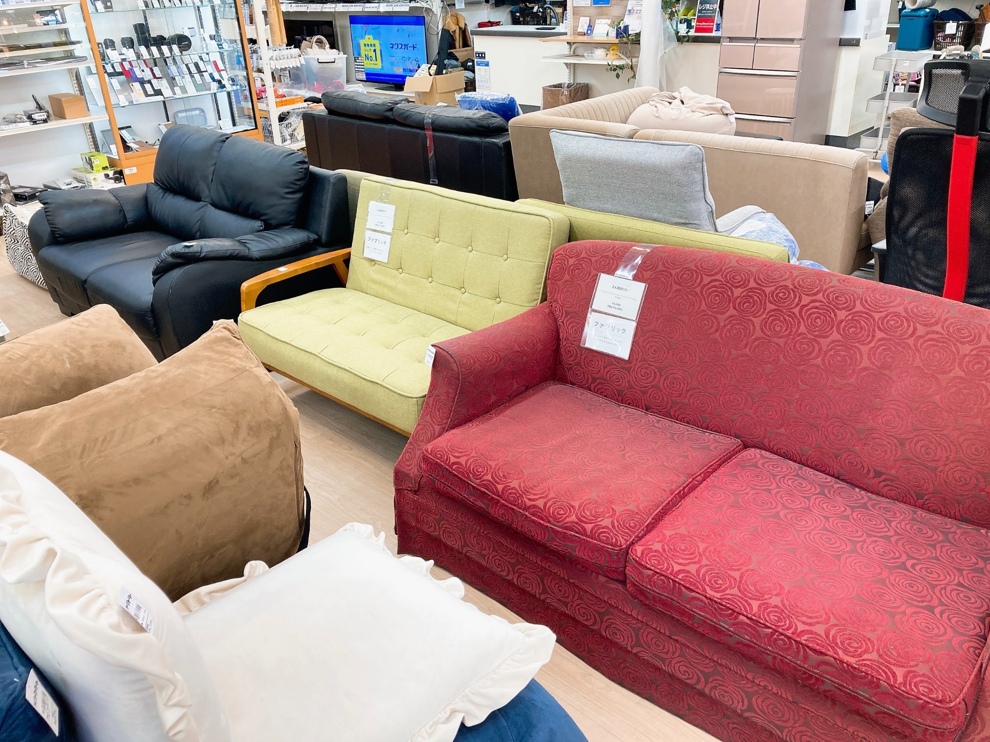 当店ではソファやダイニングテーブルセット、レンジボードなどの大型家具から、