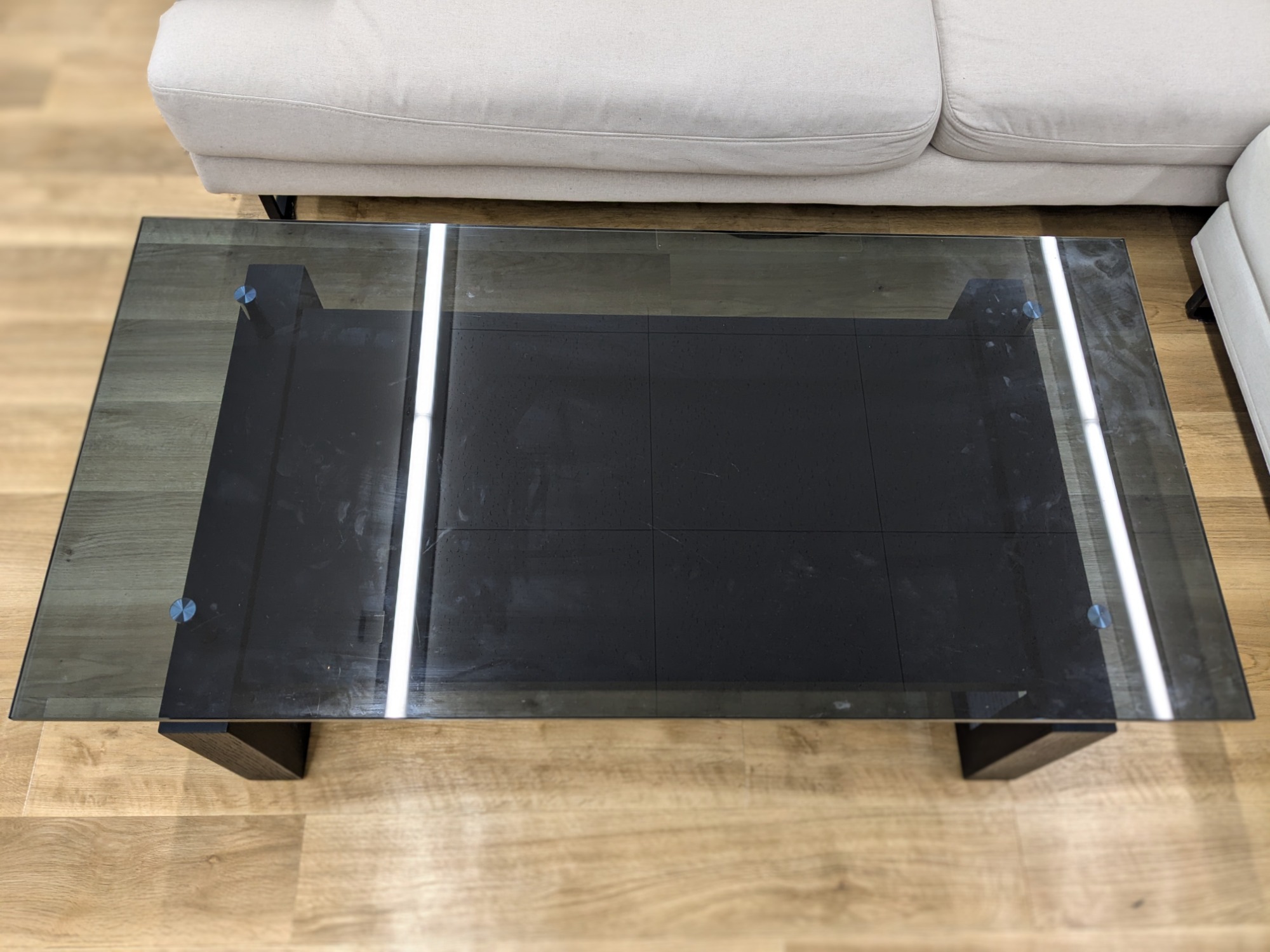 盤面の映り込みが映える上品なガラス製テーブルで、機能性にも優れています。