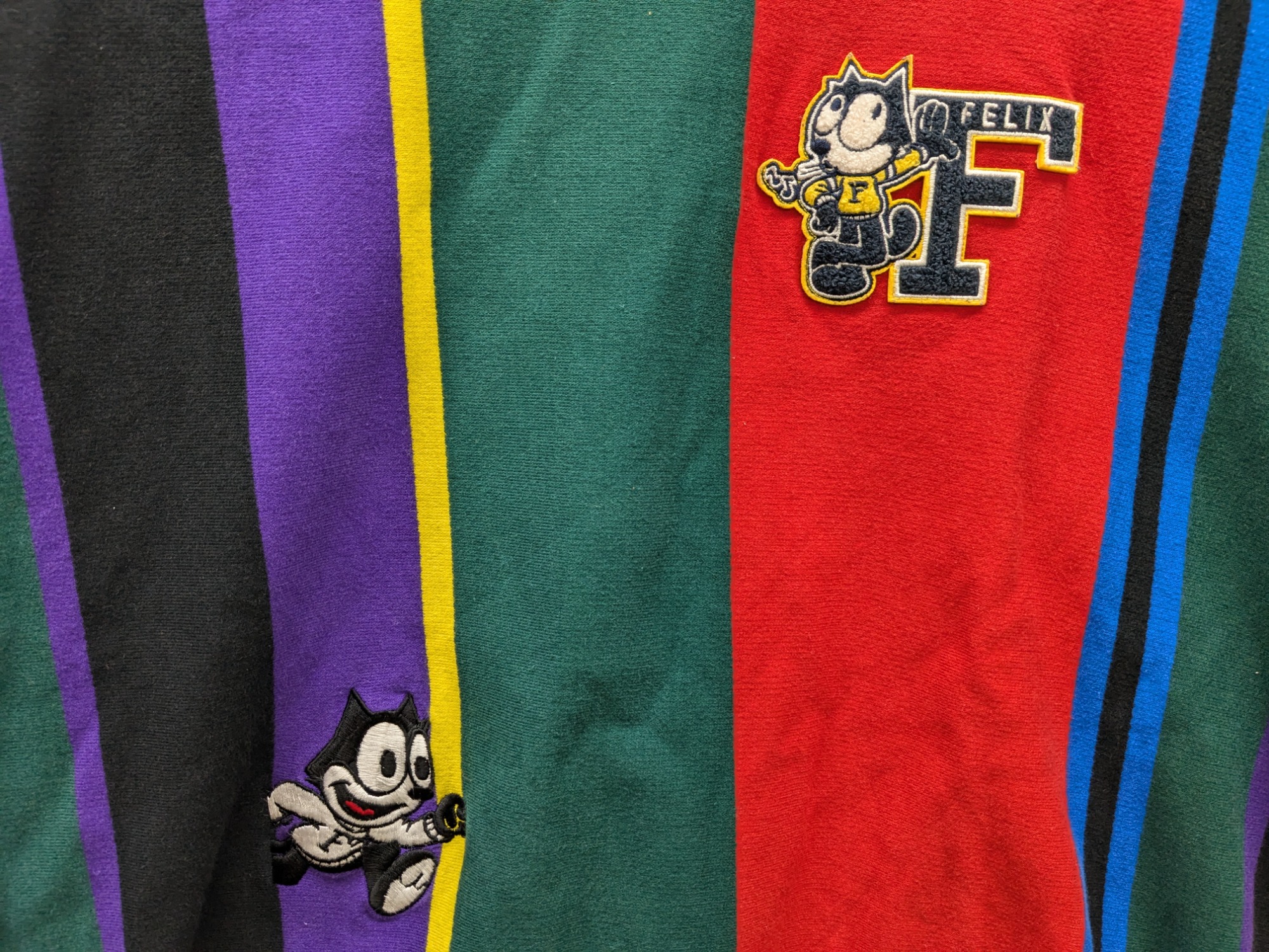 カレッジ風デザインにインスピレーションを得たFELIX THE CATのグラフィックとストライプのデザインが、完璧なバランスを実現しています