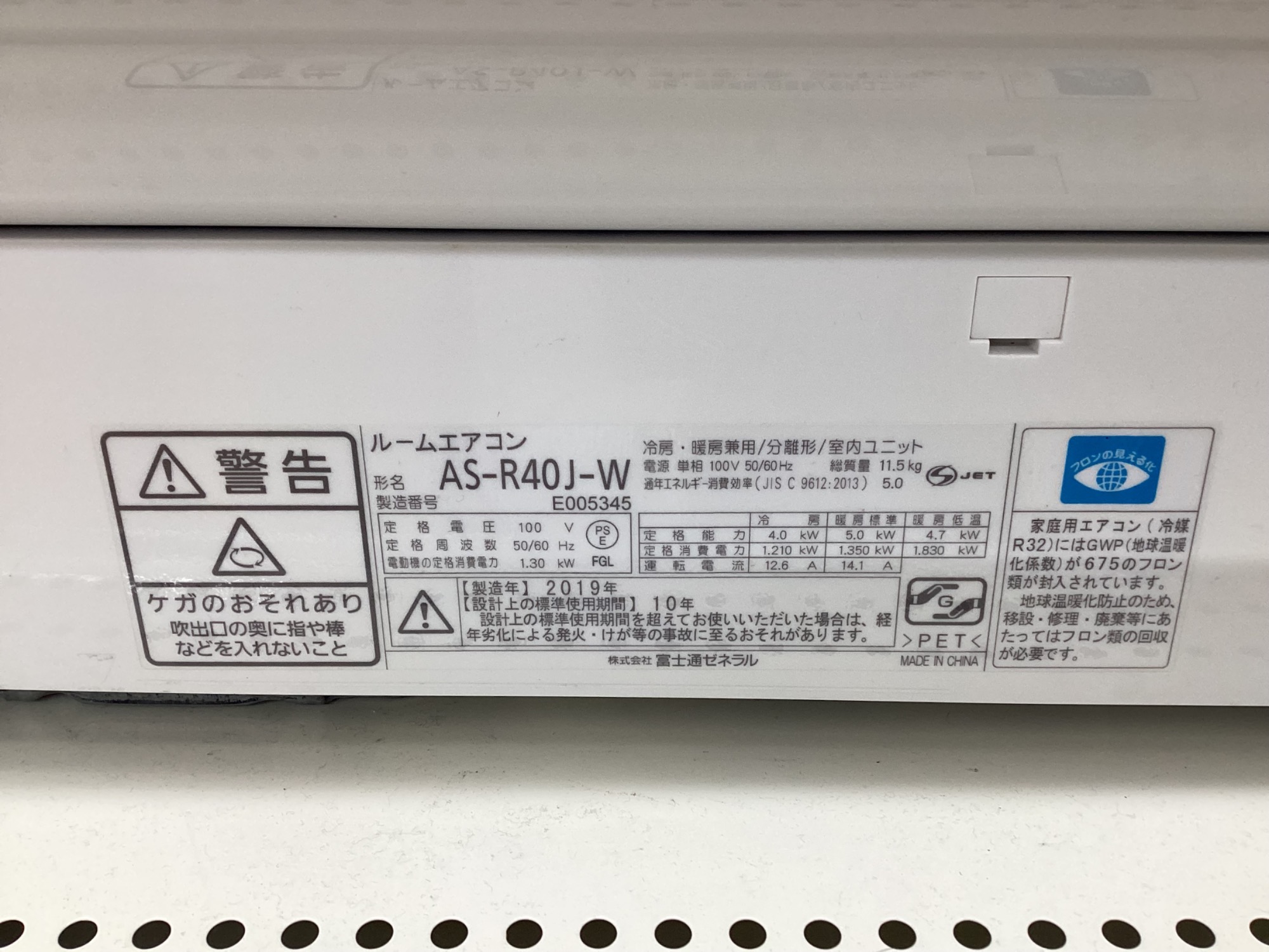 本日は【エアコン 富士通ゼネラル: AS-R40J-W:2019年製】をご紹介いたします!!