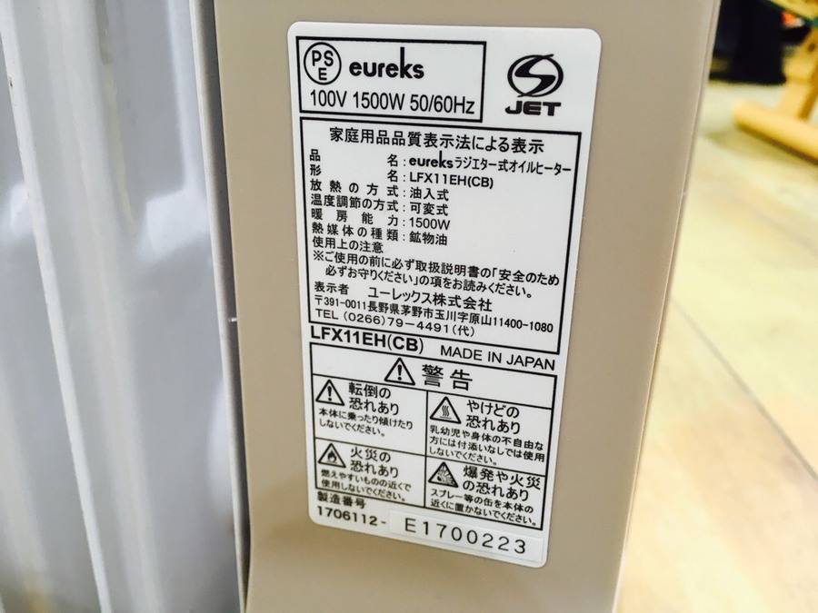 『eureks ラジエター式オイルヒーター』