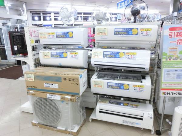 当店ではエアコンをお買い上げいただいたお客様を対象に取り付け工事を承っております。在庫も豊富です!