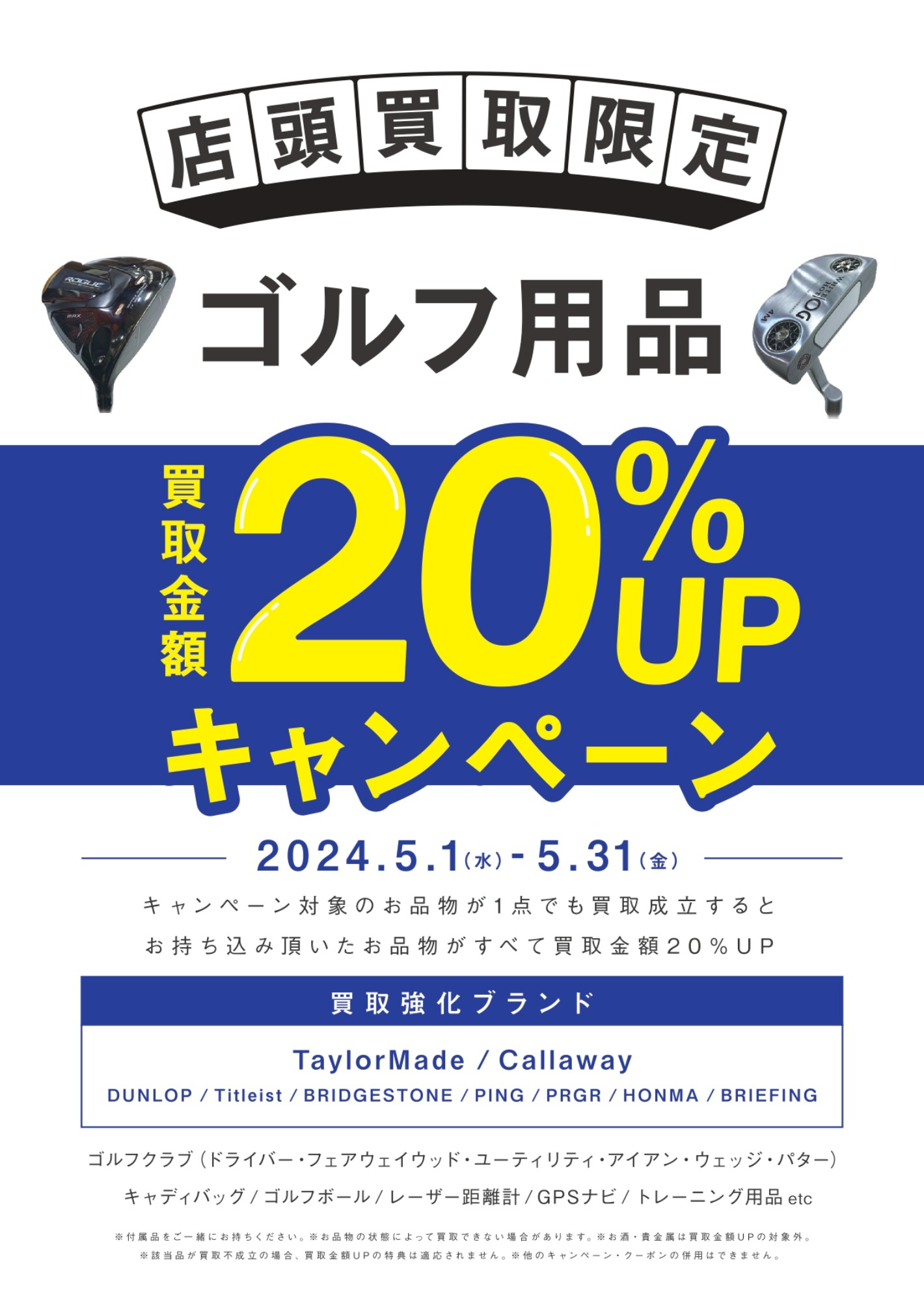 【ゴルフクラブやゴルフシューズ・買取20%アップキャンペーン実施中】