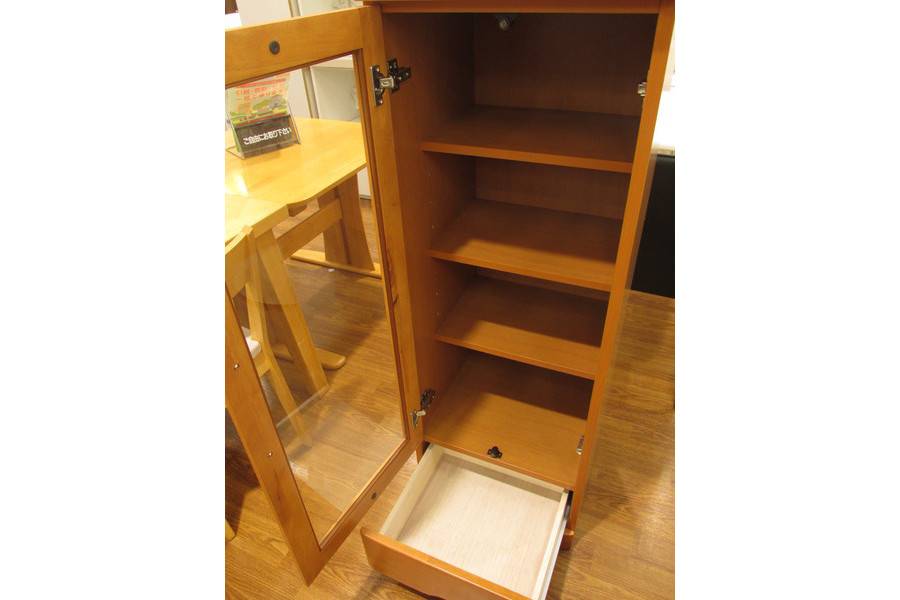 4代約120年続く信頼と実績を備えた家具の大丸の1枚扉の木製キャビネットです。