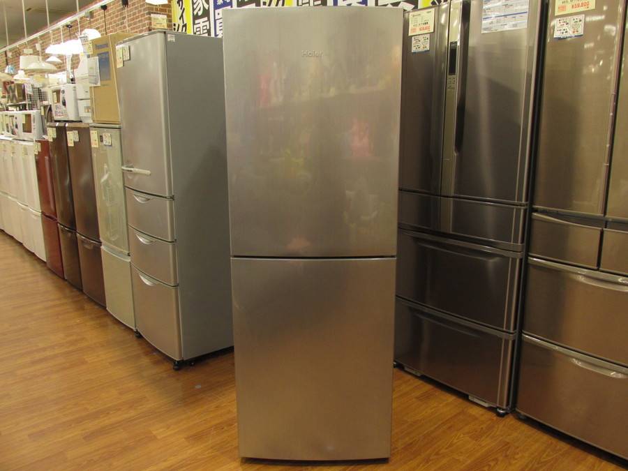 ギラリと輝くシルバーボディが特徴のハイアール製冷蔵庫です!