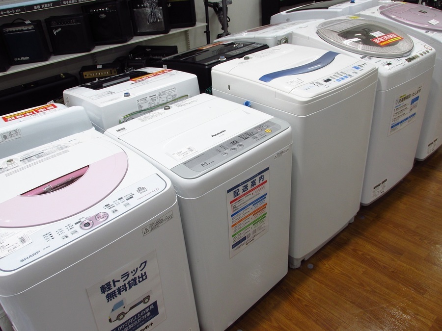 中古の洗濯機も定番人気アイテムです。一万円ちょっとで購入できるものが人気ですね。